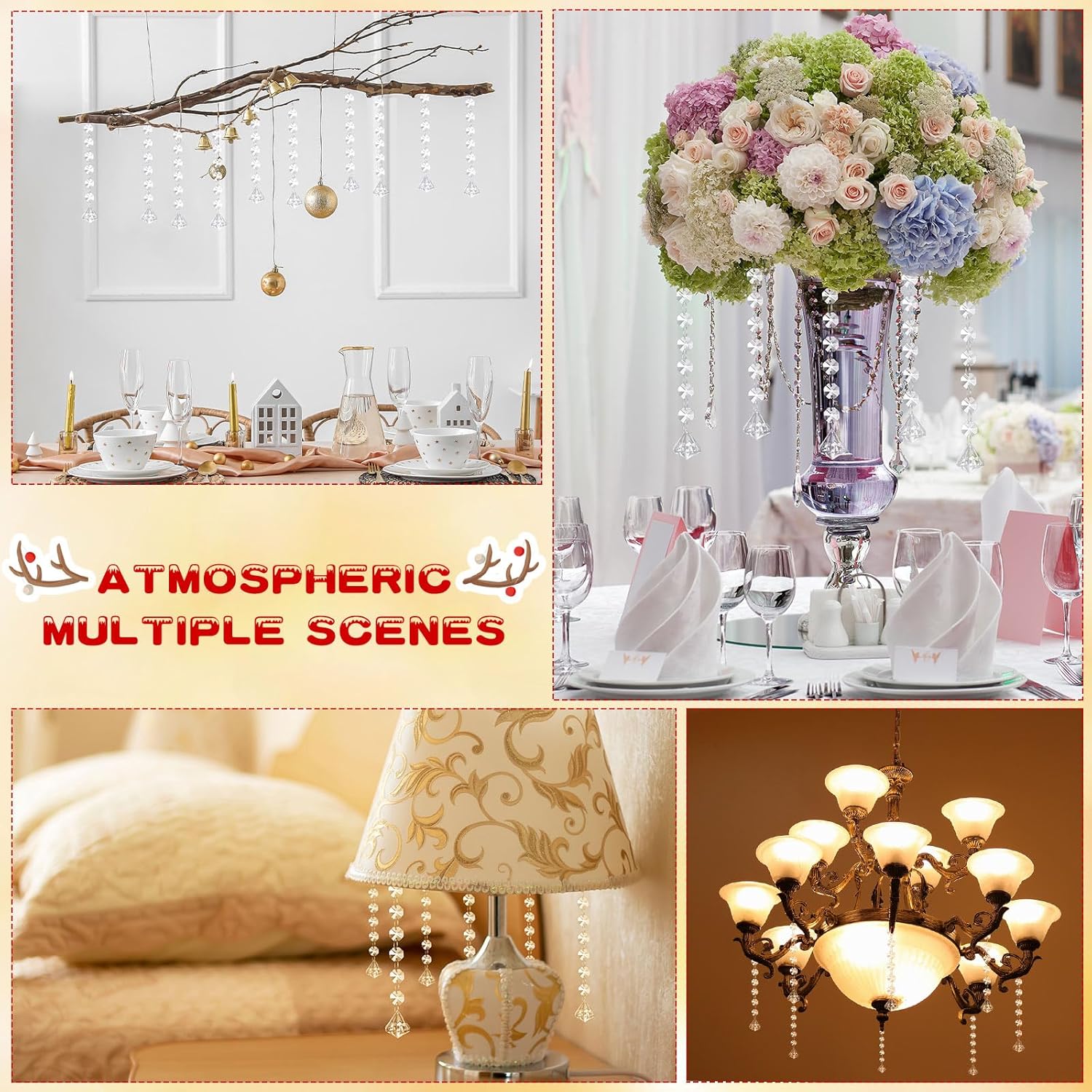 - Elegant Decor: crystal chandelier beads are ideal for Christmas trees, crafts and DIY projects, chandelier decorations, wedding centerpieces, party centerpieces and more, easy to draw people's attention, which can enhance the festive ambience