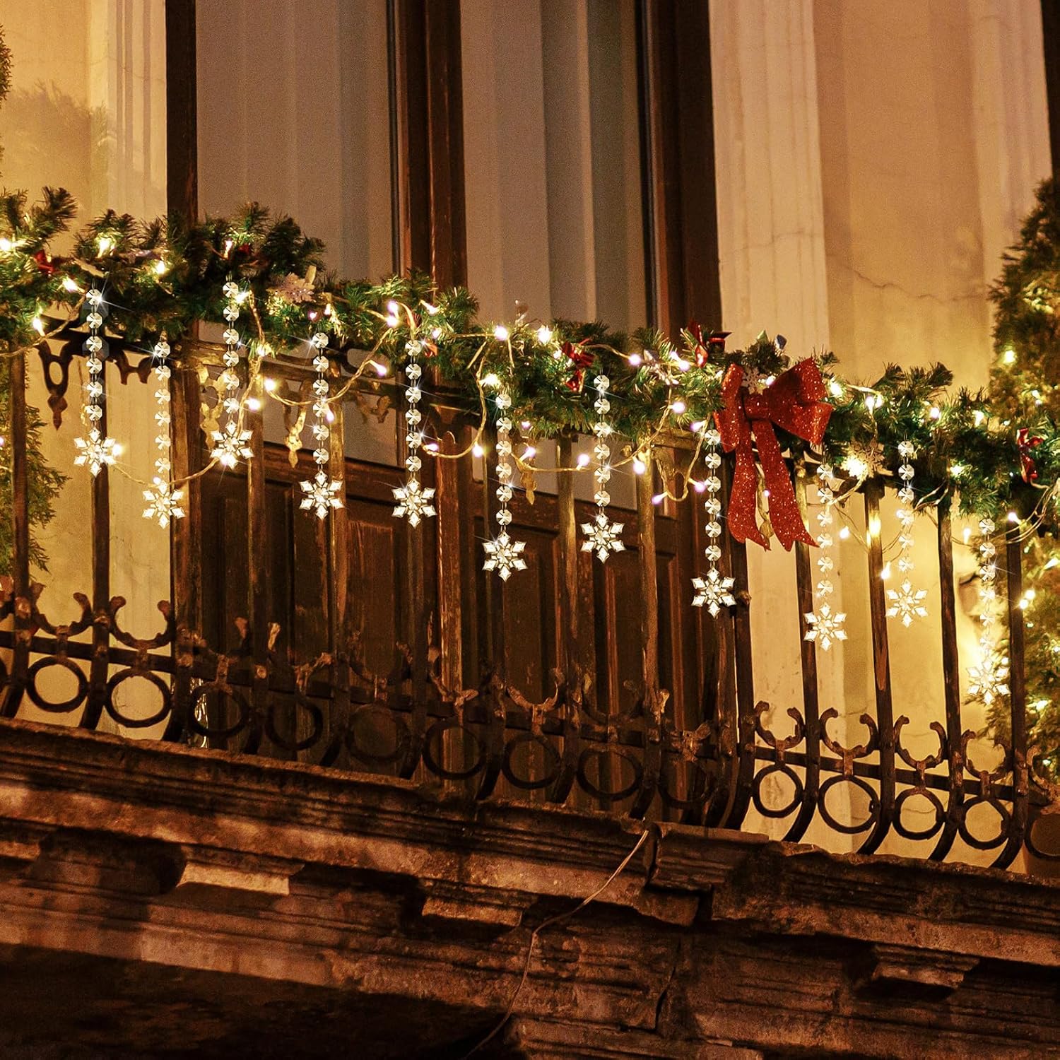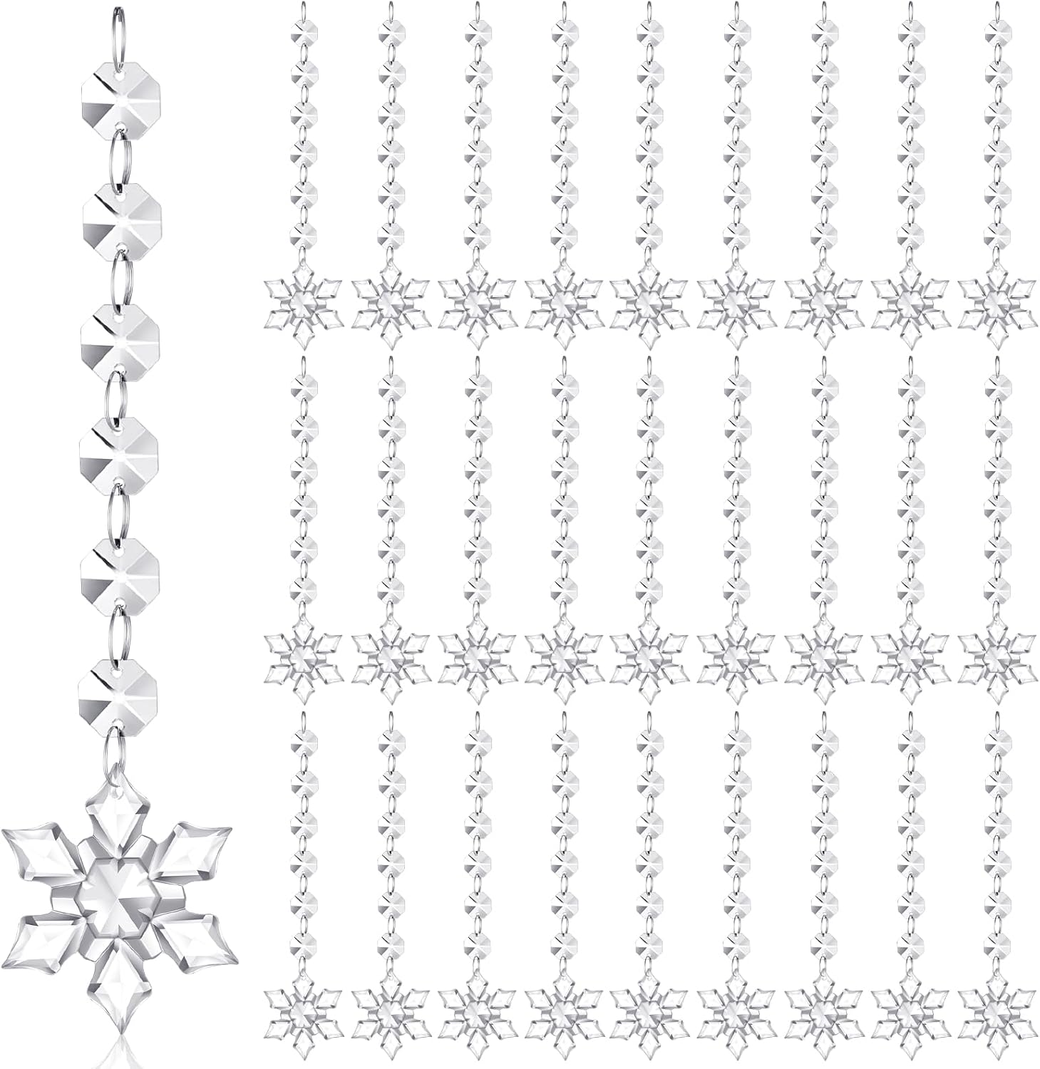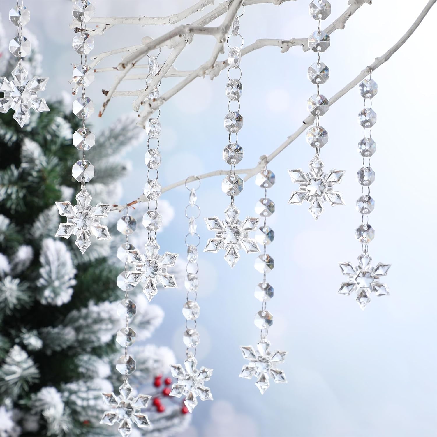 Nuenen 100 Pcs Acrylic Hanging Crystals for Centerpieces Chandelier Clear Crystal Garland Strands Ornament Acrylic Clear Beads Prisms Pendant for Christmas Tree Window Home Decoration(Snowflake)