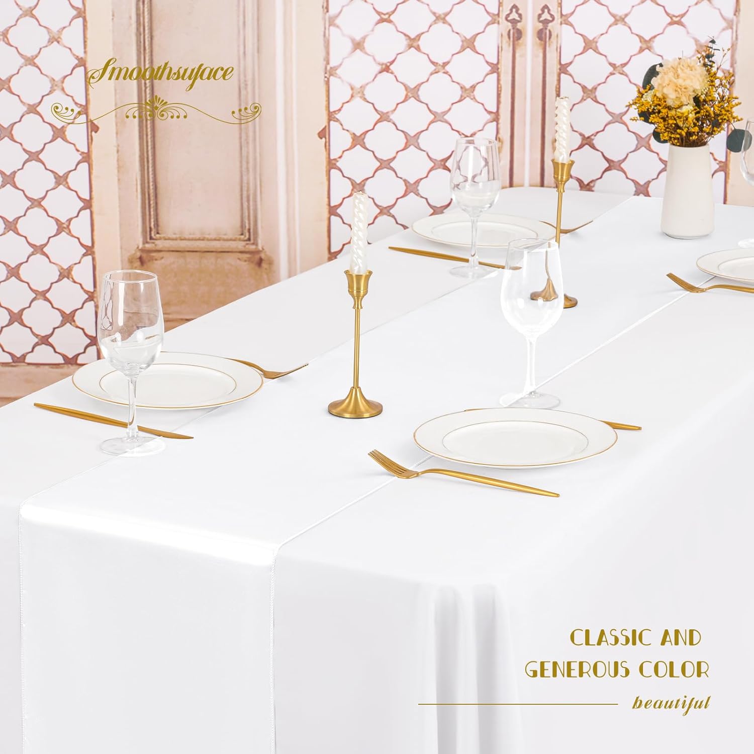 - 🍷【Table Runners for Parties】The wide satin table runners for your kitchen or dining table adds much charm and décor to your table top settings.Suitable for both outdoor and indoor events.Satin table runner is ideal for wedding reception, birthday party, baby shower, banquet meeting, New Year parties, the Valentine's day, bridal shower, anniversary parties, graduations and any other special occasions.Our satin table runners are surely will add a touch of class and elegance to your.Choose us!