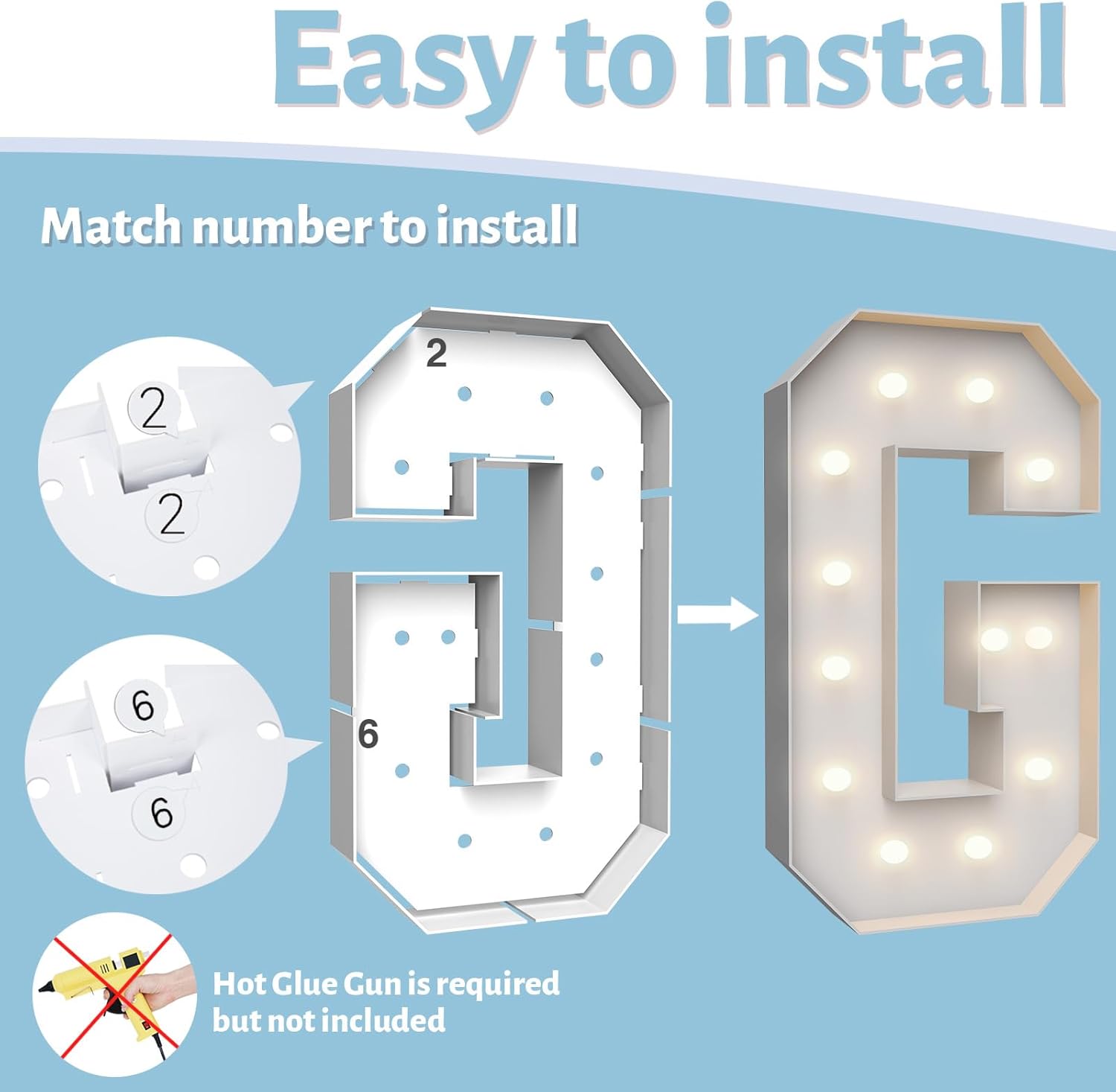 - ASSEMBLY REQUIRED: The marquee numbers need to be assembly with hot glue gun(not included in the package) Assemble it in advance will make your party amazing and fantastic