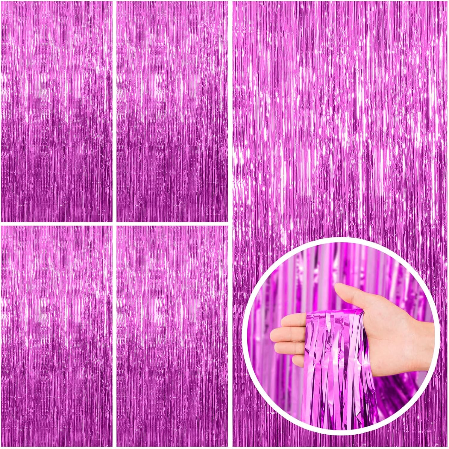 5 Pack Hot Pink Party Decorations - Tinsel Curtain Streamers Foil Fringe Backdrop for Birthday, Christmas, Bachelorette, Graduation, Fiesta Photo Booth