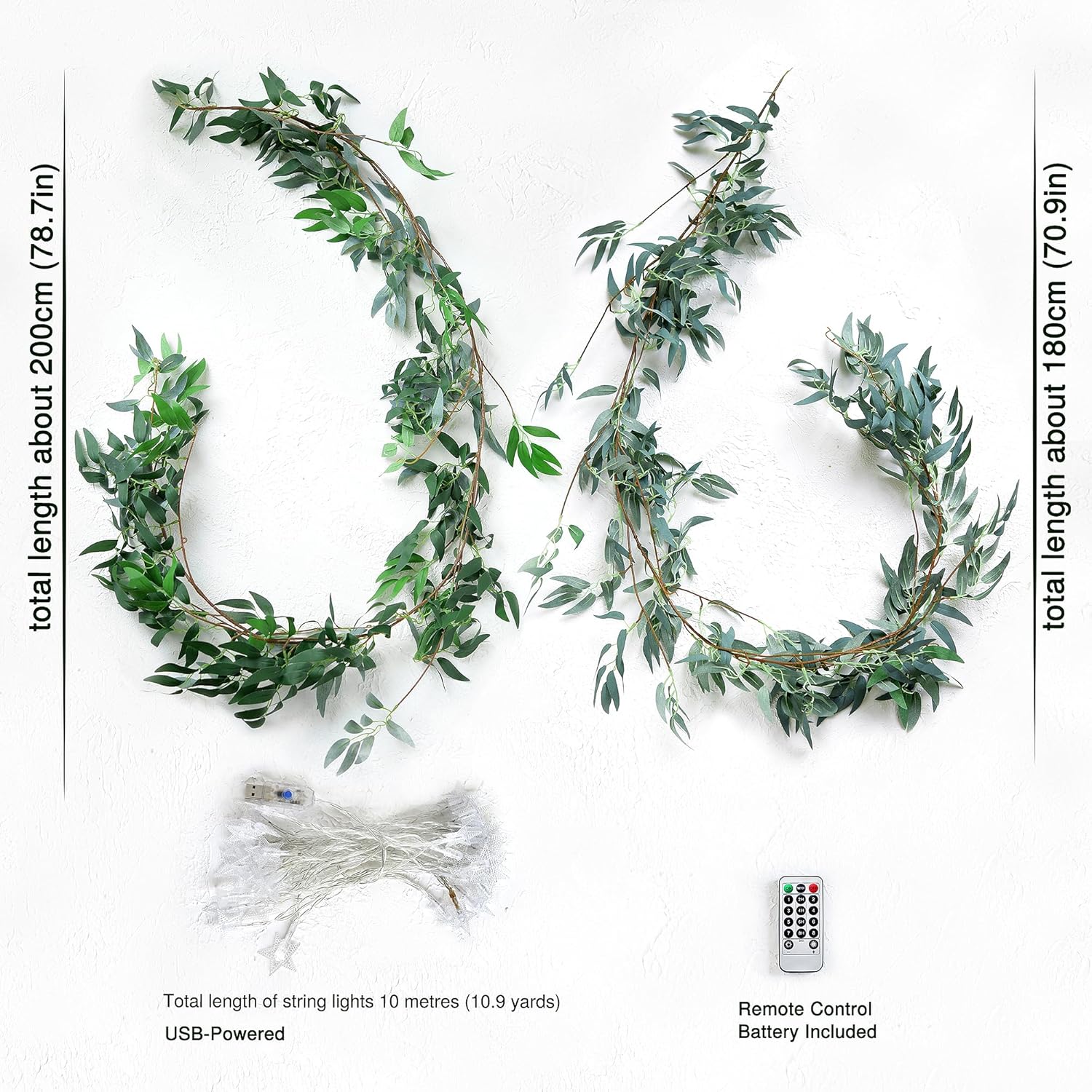 Enchanting Decor: Pair of Flexible Rustic Willow Garlands Adorned with 33 Feet Starry String Lights (USB Operated) by FiveSeasonStuff Floral