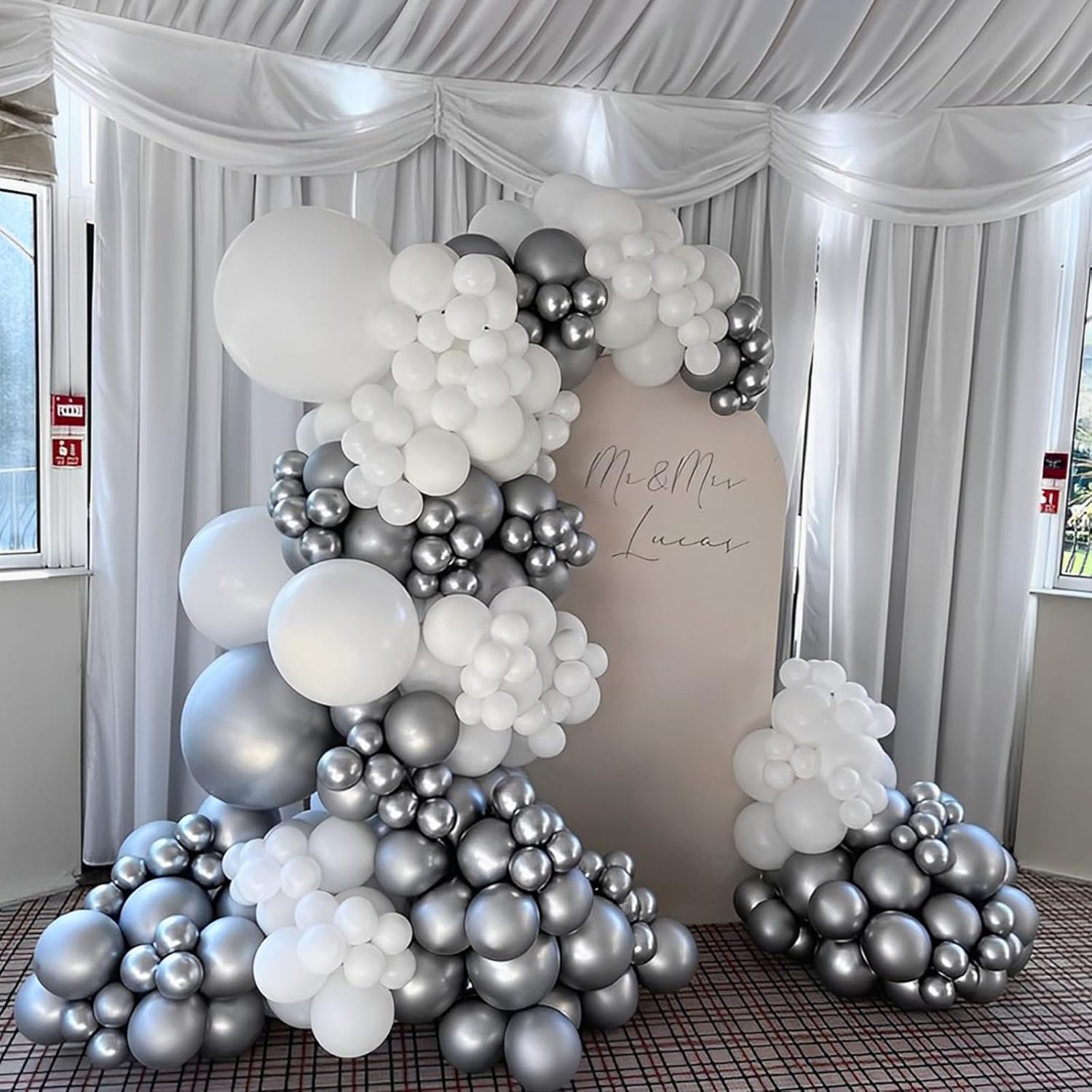- Various Sizes: Carefully designed with 4 different sizes silver latex balloons : 18inch, 12inch, 10inch, and 5inch, ensuring you have more flexibility in decorations. From creating splendid silver balloon arch to crafting exquisite balloon backdrop, make your silver balloon garland arch kit look more layered, your creativity knows no bounds