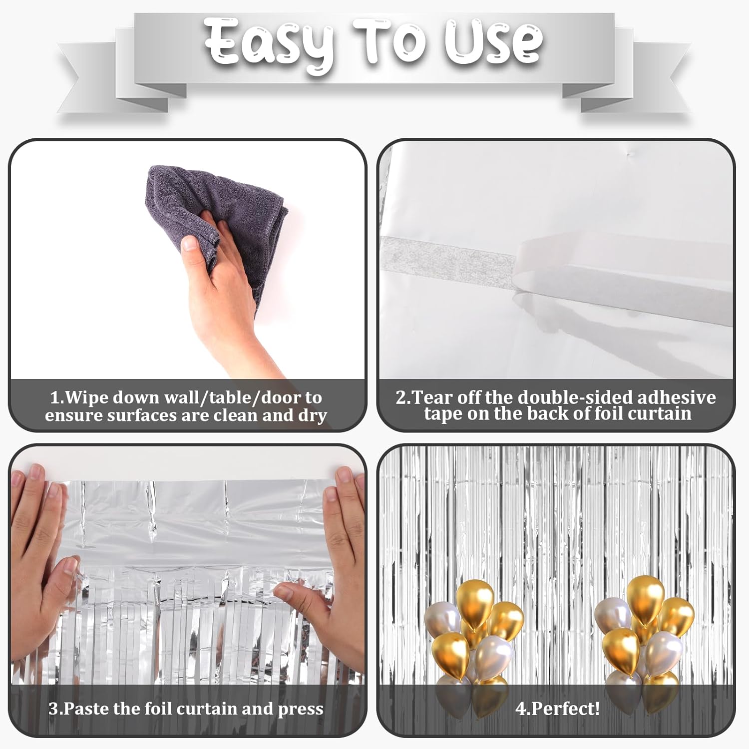 • Premium Material: This silver foil curtain backdrop is made of stable tinsel, non-fading, stay shiny and reusable. Unfold it and then enjoy your glittering party