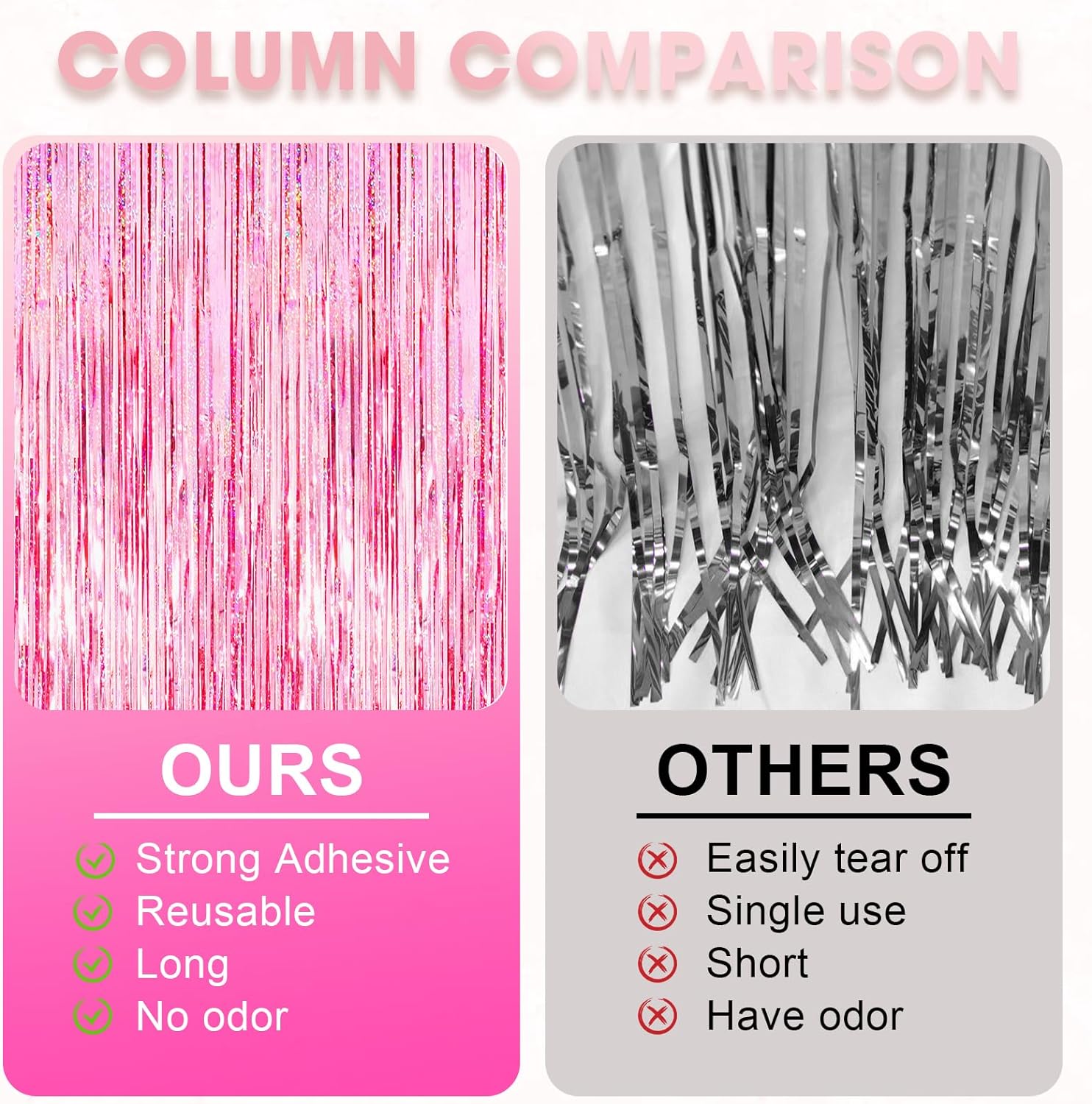 - Premium Material: This Laser Pink foil curtain backdrop is made of stable tinsel, non-fading, stay shiny and reusable. Unfold it and then enjoy your glittering party