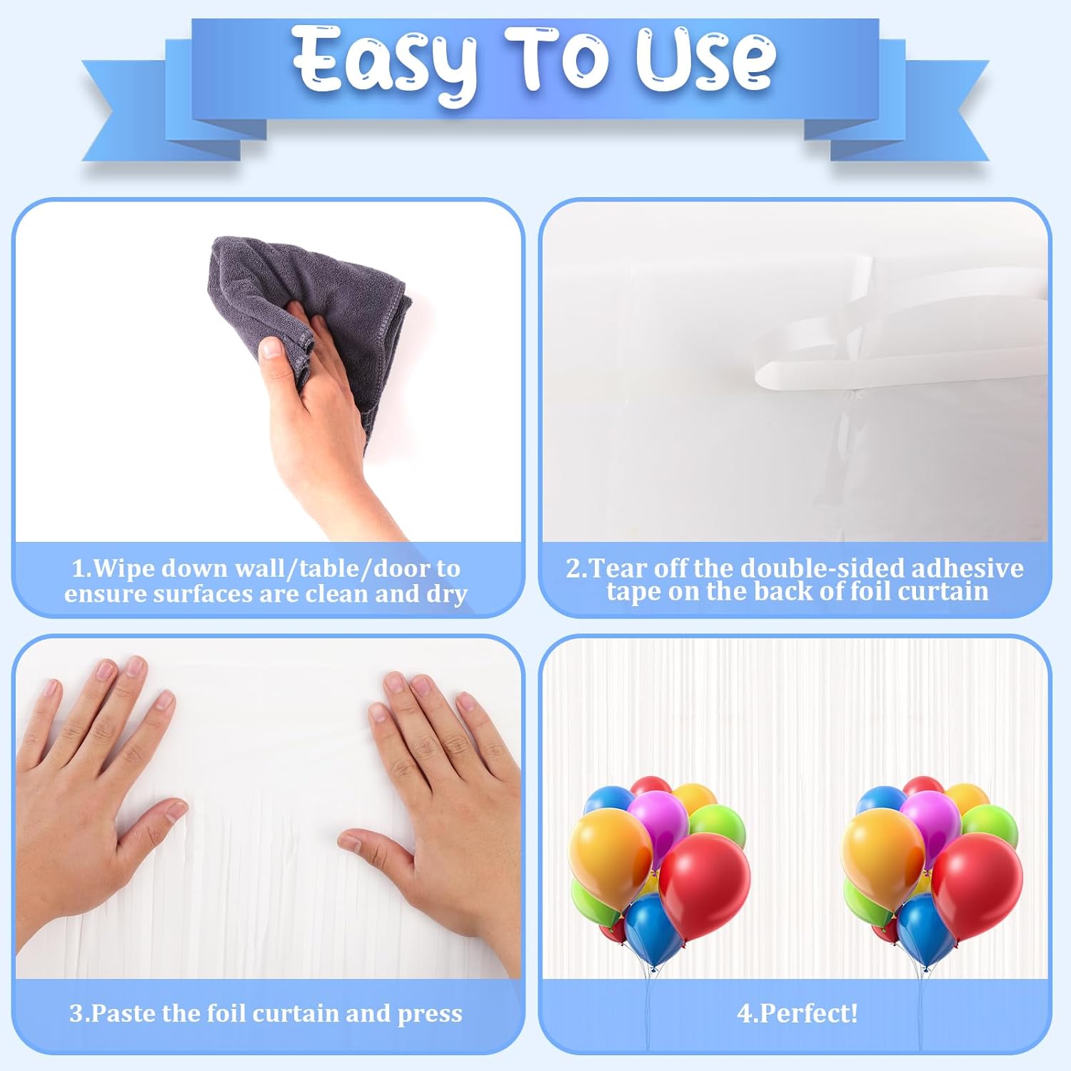• Premium Material: This white foil curtain backdrop is made of stable tinsel, non-fading, stay shiny and reusable. Unfold it and then enjoy your glittering party