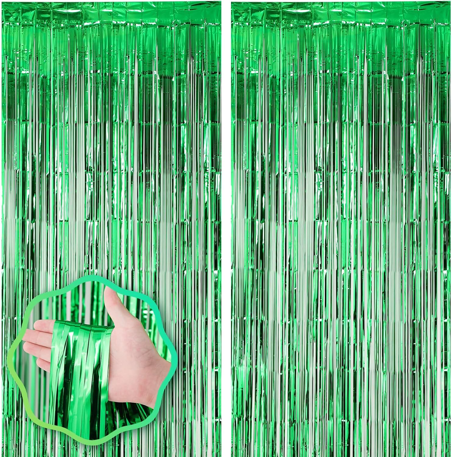 2 Pack Green Foil Fringe Backdrop Curtains, Tinsel Streamers Birthday Party Decorations, Fringe Backdrop for Graduation, Baby Shower, Gender Reveal, Disco Party