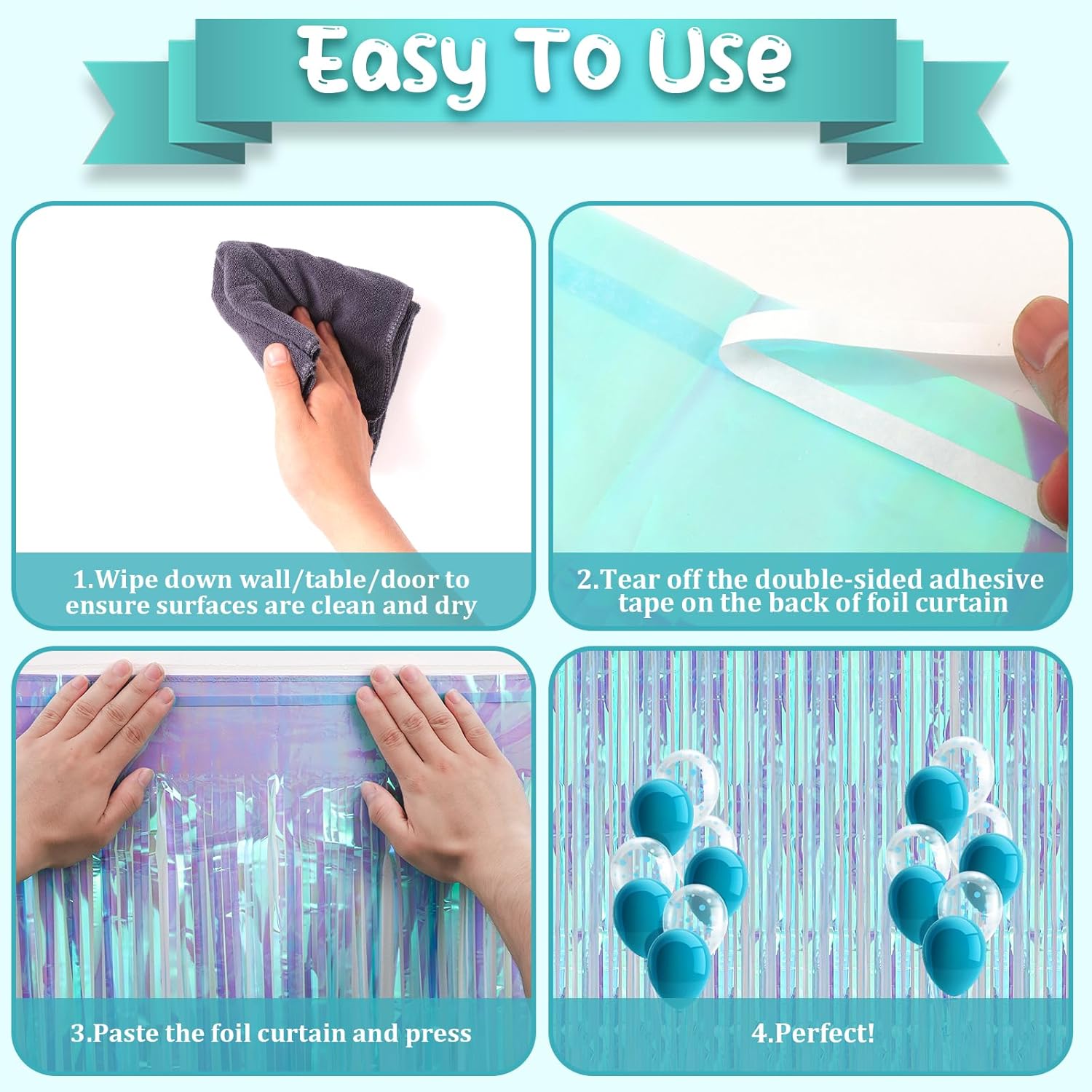 - Package Included: 4 packs of foil fringe curtains, the size of the foil curtain is 3.3*8.2 ft. It's long enough to fit any occasion. Please do not stick the foil curtain on uneven or stained walls to prevent it from falling off