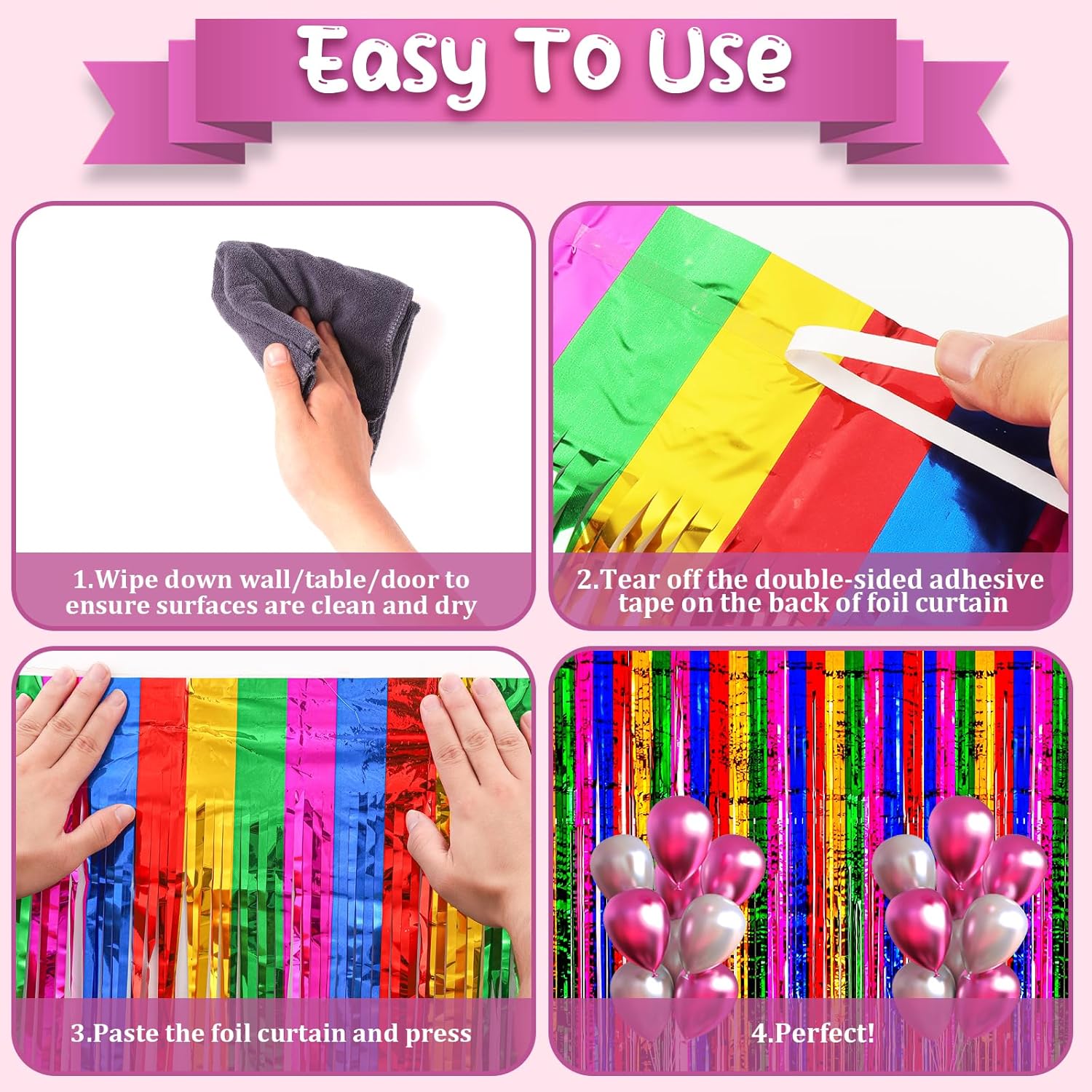 4 Pack 3.3x8.2 Feet Rainbow Foil Fringe Backdrop Curtains, Tinsel Streamers Birthday Party Decorations, Fringe Backdrop for Graduation, Baby Shower, Gender Reveal, Disco Party