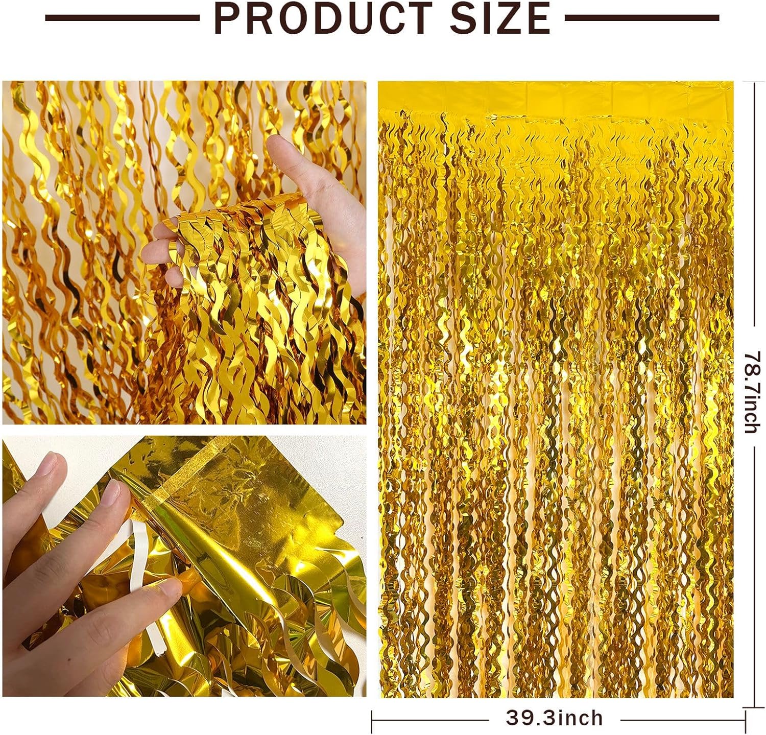- 【Gold Photo Backdrop】The wavy foil fringe curtain with sparkle, a stunning decorative piece that will add a touch of glamour and elegance to your party decorations.