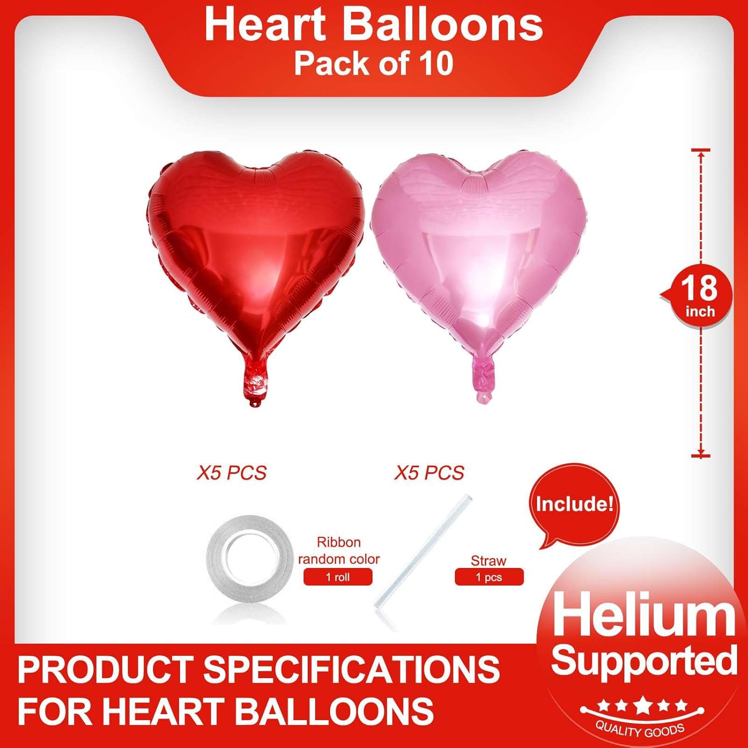 - Package Included:10Pcs (Pink*5+Red*5)18 inch Heart Balloons(uninflated) + 1pcs Straw +1pcs 32 foot Ribbon Roll+20 Dots Glue