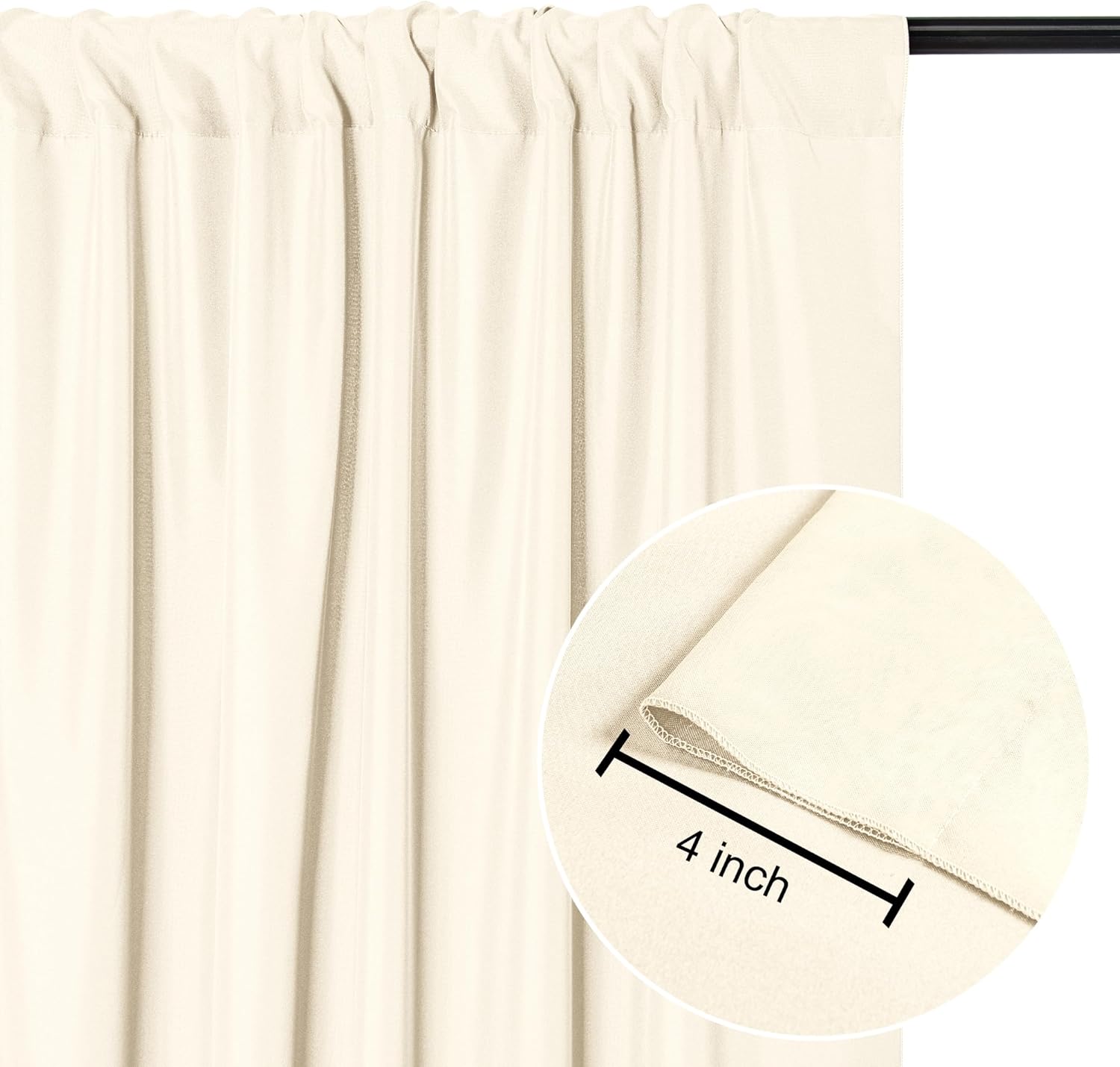- EASY TO INSTALL: Each curtain panel comes with 4 inch rod pocket on the top, fit up to any standard rods. And easy to drap or hang straigh. Please note: Dropback Curtains Only,No Backdrop Stand.