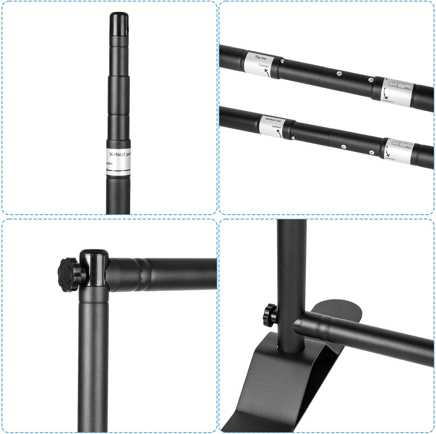 - (4) x Crossbar (2 Top Crossbars + 2 Bottom Crossbars) The maximum pipe diameter of the crossbar is 33mm. Adjustable width (Min 6.2 ft to Max 10 ft), The maximum visible graphic size is 10 ft wide x 10 ft high. Easy to connect, Material: Aluminum Alloy,Safely use.