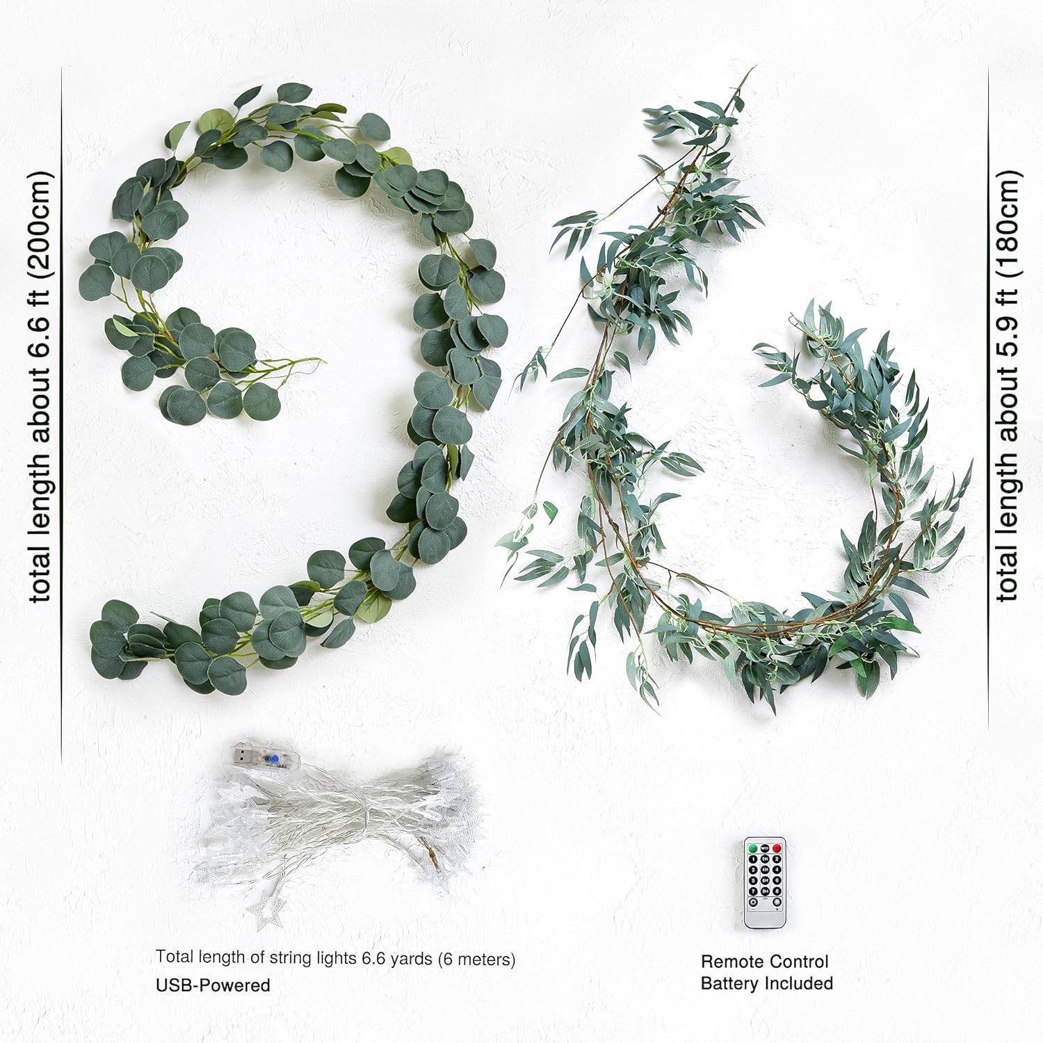 • Color : Willow and Eucalyptus Garlands With 33 Feet 80 Led Star String Lights (Battery)