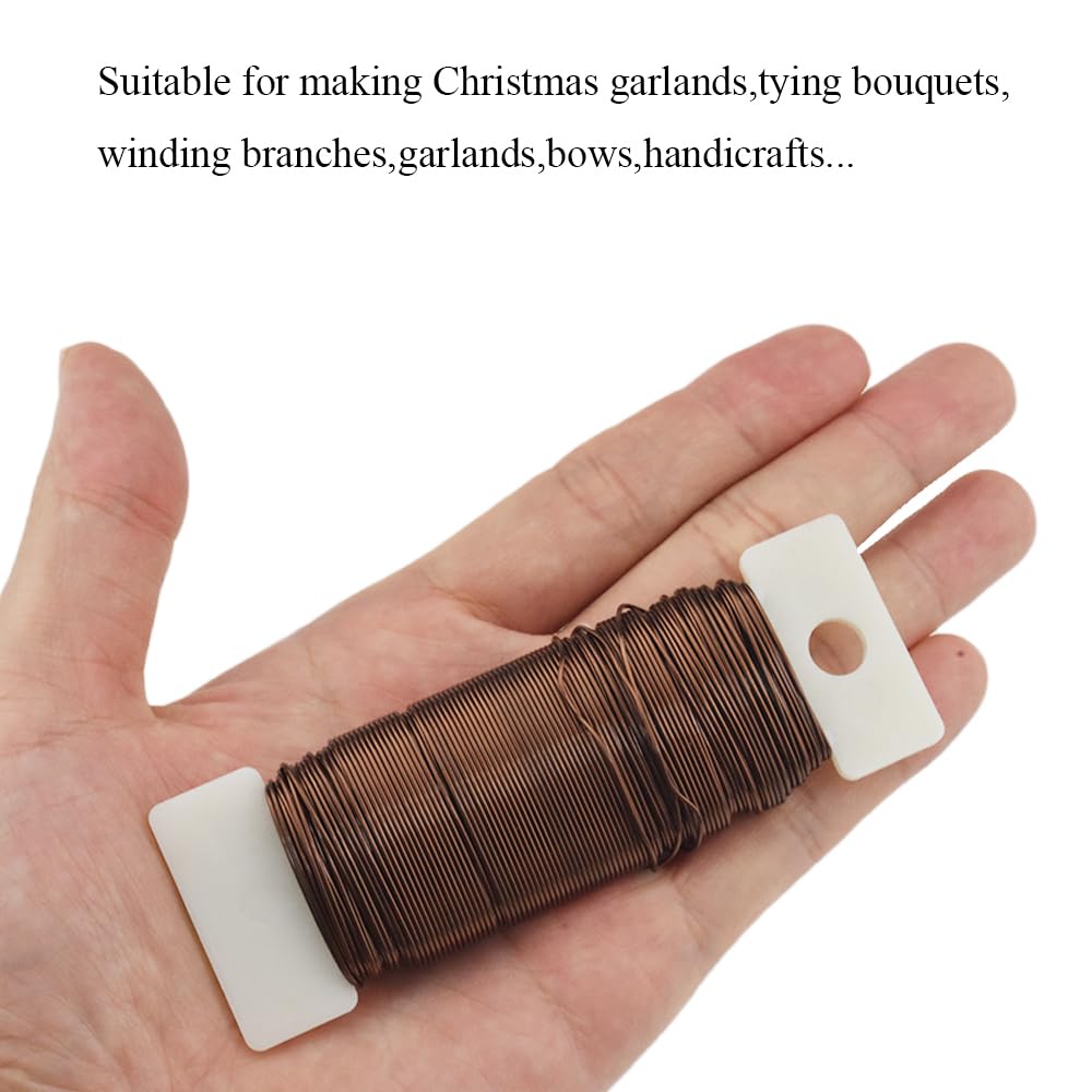 HAHIYO 22Gauge Coffee Color Metal Floral Wire - 1 Roll, 38 Yards (115 Feet) - Flexible Paddle Wire for Craft, Christmas Wreath, Flower Arrangement, Bouquet Wrapping, Wedding, DIY