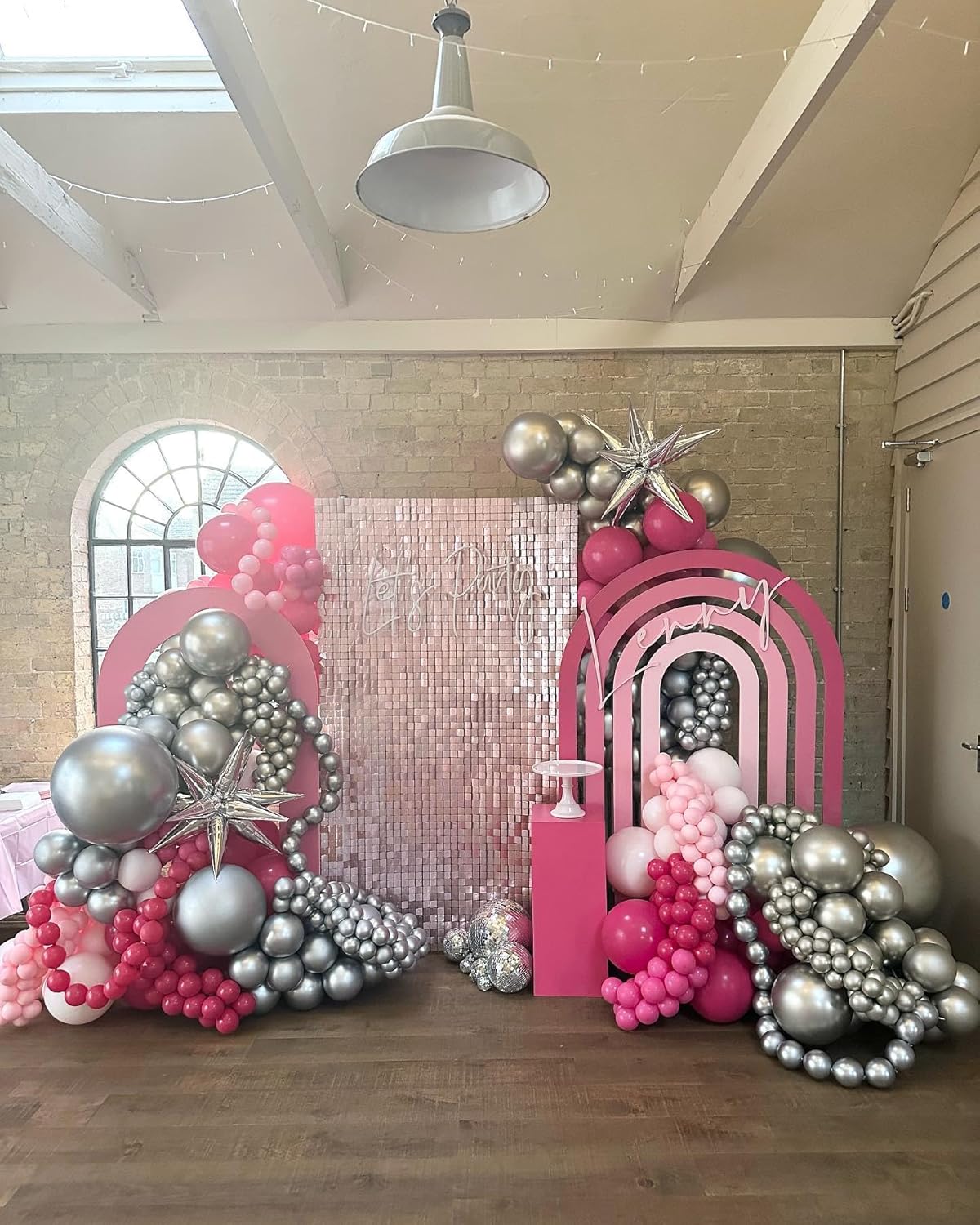 Pink and Silver Balloons, 12 Inch Hot Pink Pastel Latex Balloon Metallic Chrome Silver Helium Balloons for Girls Women Bridal Birthday Baby Shower Party Decorations