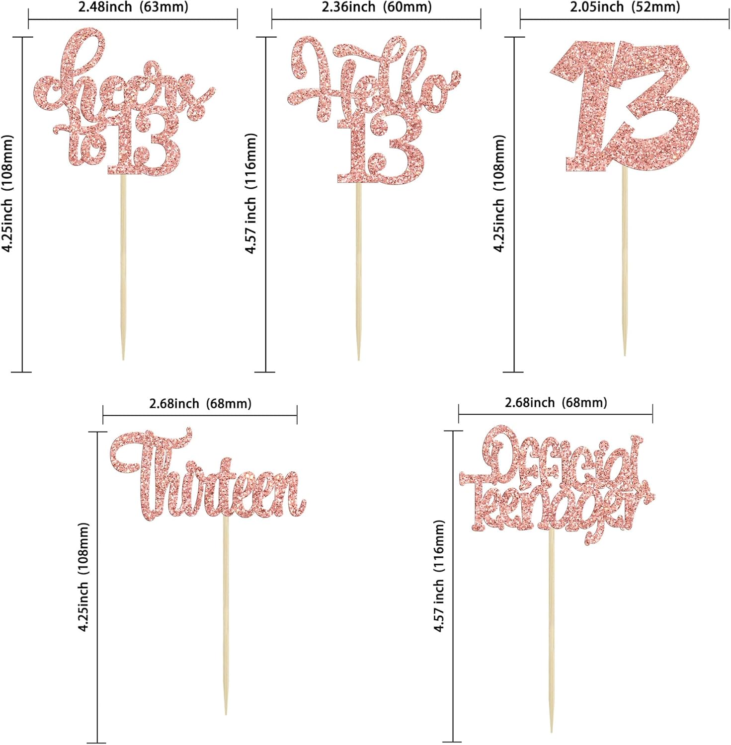 30Pcs 13th Birthday Cupcake Toppers Hello 13 Cupcake Picks Official Teenager Cheers to 13 Years Old Cake Decorations for 13th Birthday Anniversary Party Supplies Rose Gold Glitter