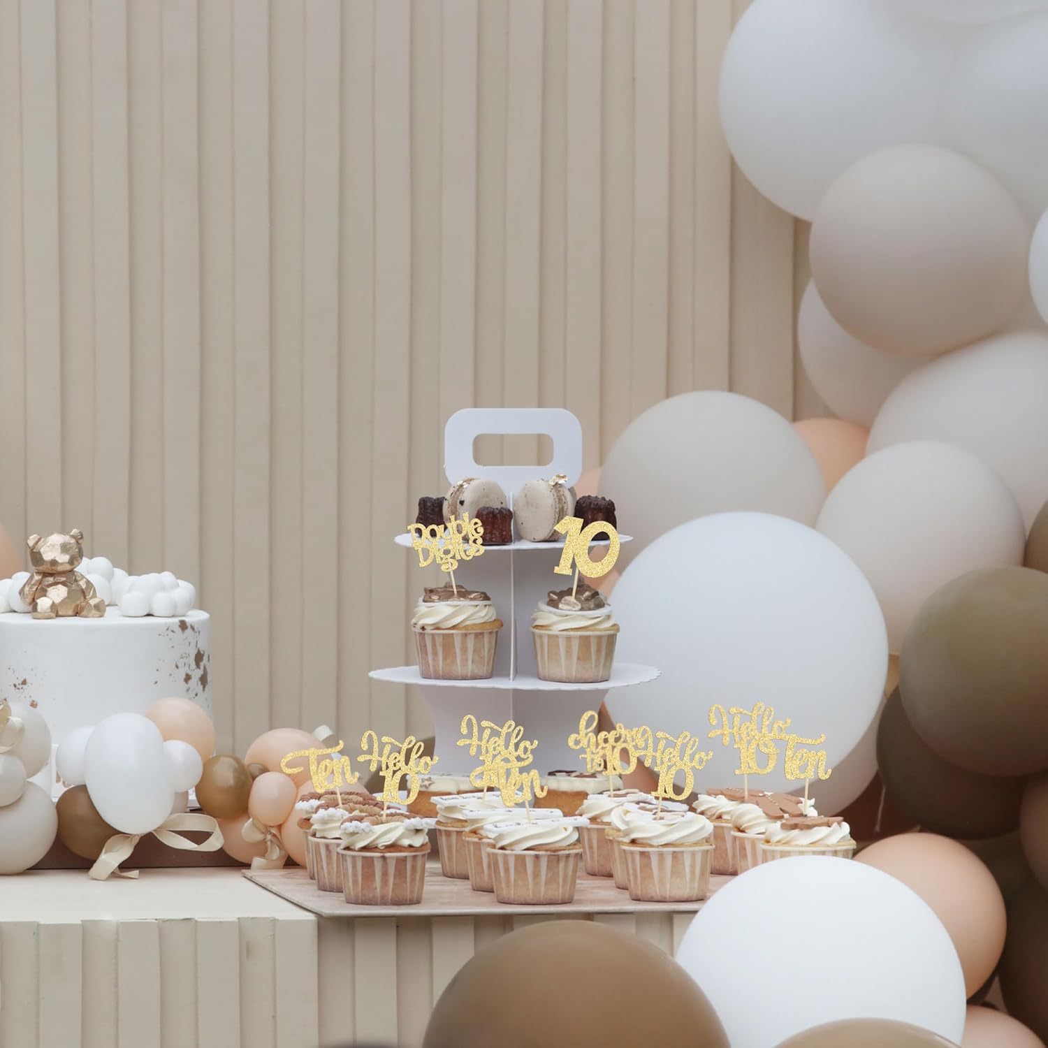 30Pcs 10th Birthday Cupcake Toppers Ten Double Hello 10 Cupcake Picks Cheers to 10 Years Old Cake Decorations for 10th Birthday Party Supplies Gold Glitter