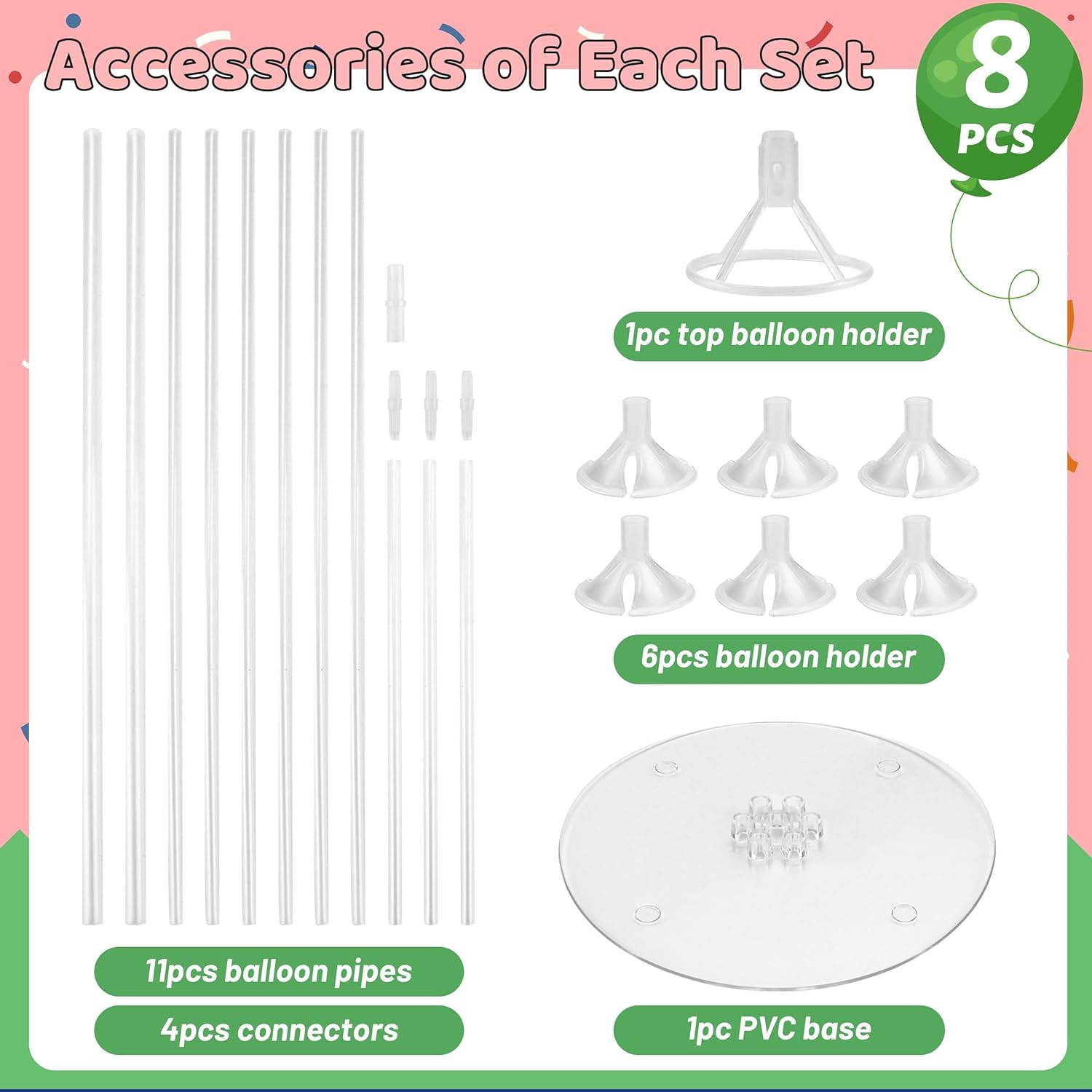 - 【Package Included】- The balloon stand kit includes 8 sets of balloon stand , each balloon stand is composed of 11pcs balloon pipes, 4pcs connectors, 1pc top balloon holder, 6pcs balloon holder, 1pc PVC base.