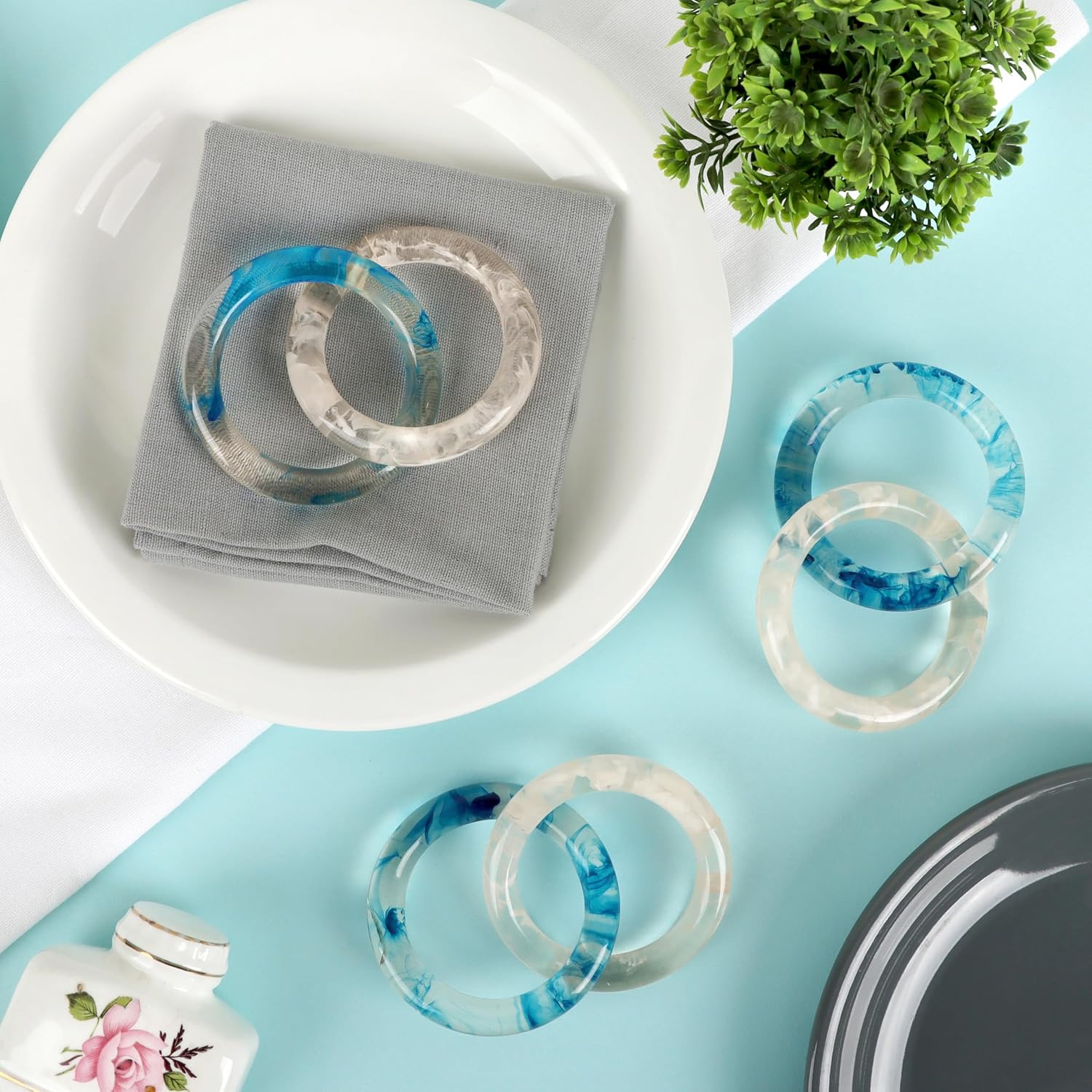 - ✅ Perfect sized : Complete set of 8 blue opaque epoxy resin napkin rings each measures 3.25 x 3.25 x 1 inches