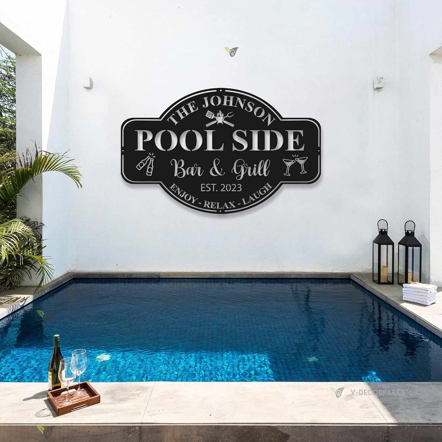 Personalized Family Poolside Sign LED Light,Swimming Pool Metal Sign,Pool Oasis Bar and Grill Metal Wall Decor,Patio Decor,Housewarming Gift