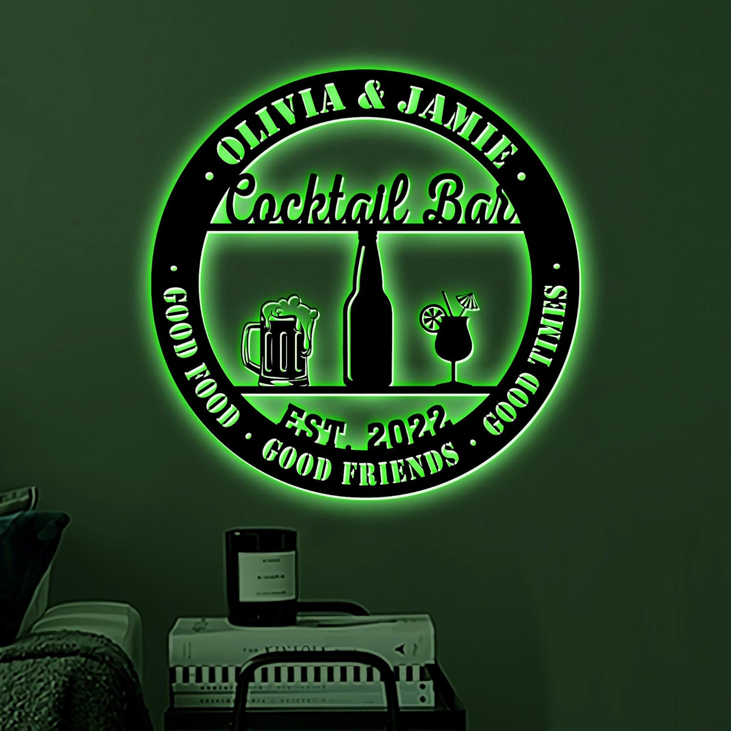 Personalized Cocktail Bar Metal Sign LED Lights, Cocktail Sign, Drinking Lounge, Cocktail Lovers Gift, Father Day Gift, Bar Decor for Home