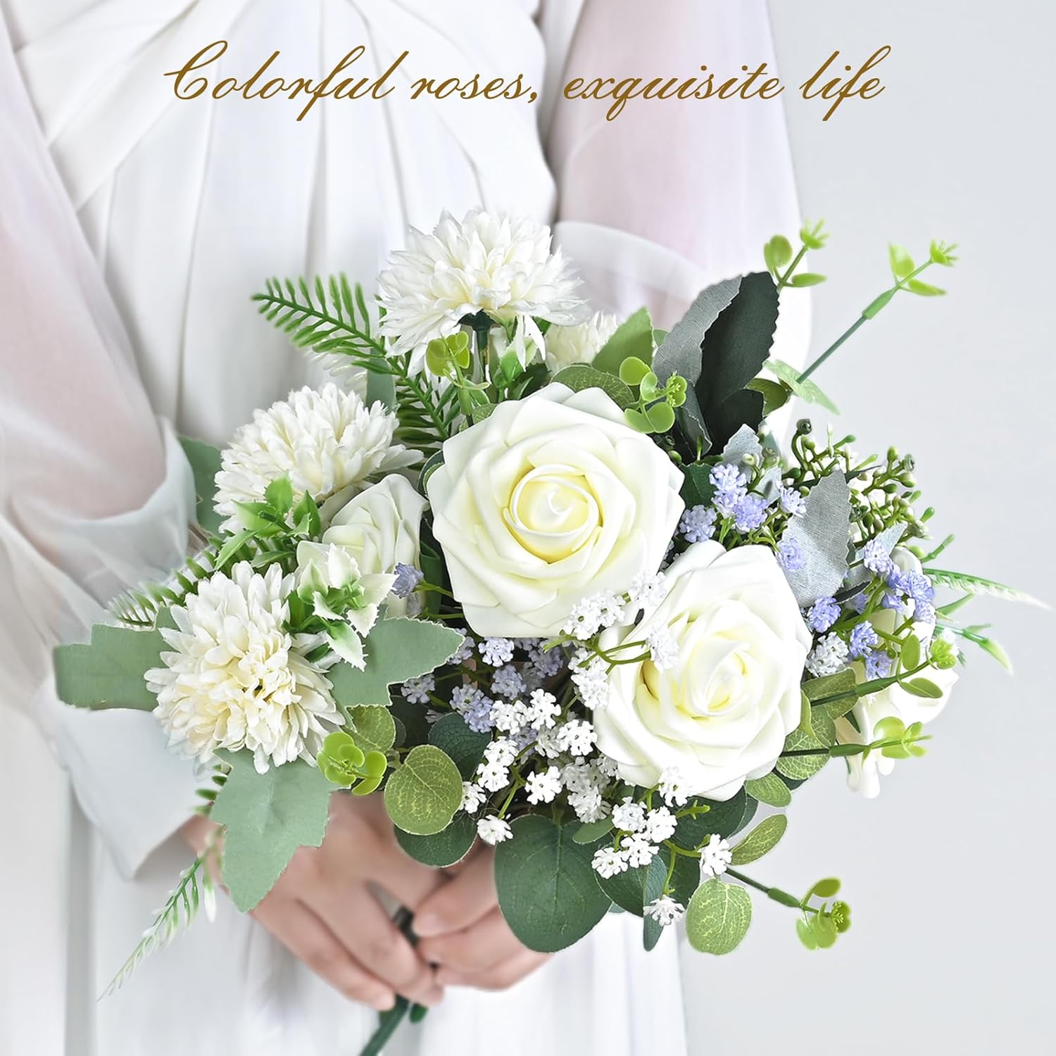 BLEUM CADE 36Pcs Artificial Flowers Fake Roses with Stems, Ivory White Boxed Foam Roses for DIY Bouquets Centerpieces Wedding Party Arrangement Bridal Shower Decor