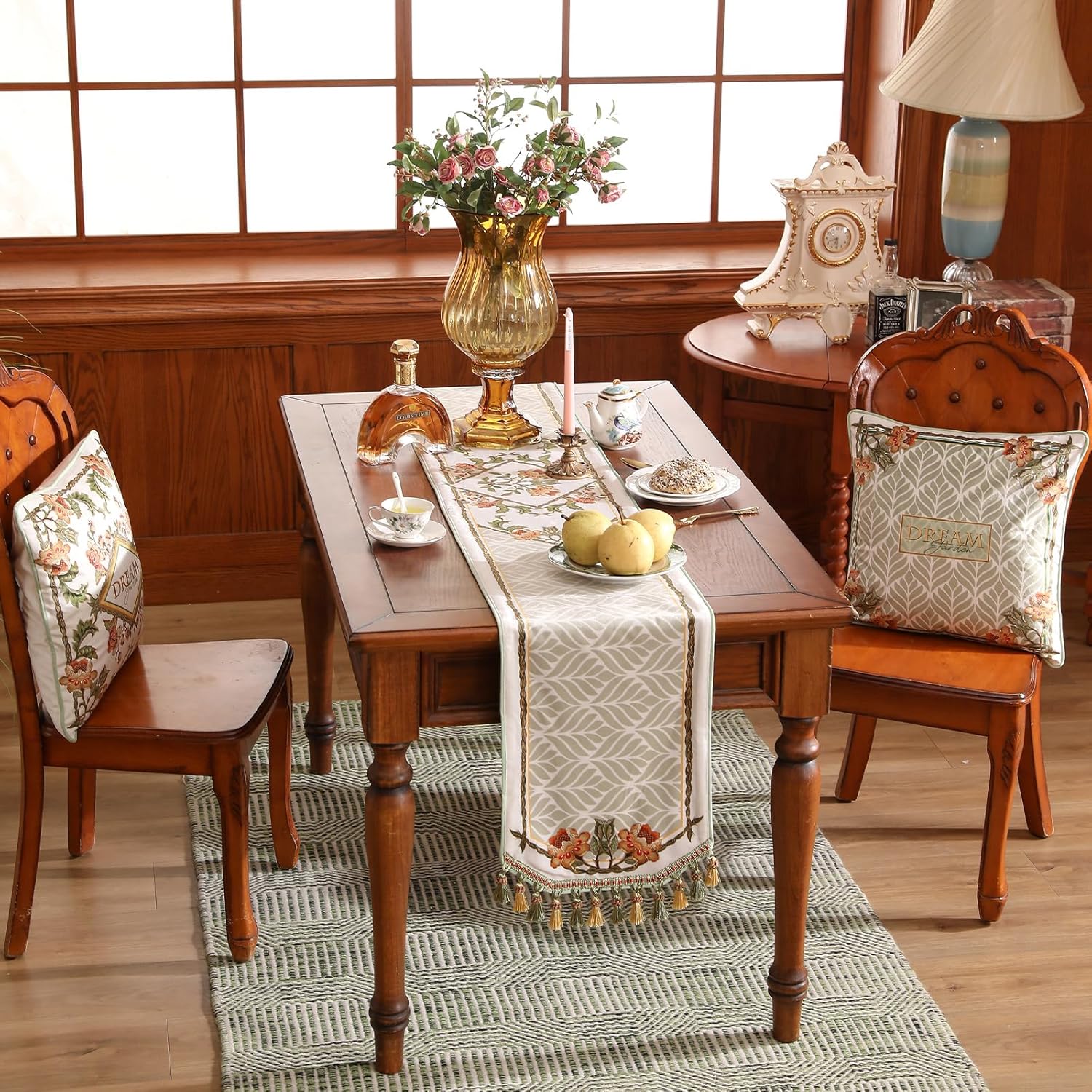 - Care and Maintenance: Depending on the design, our table runners with tassels or other decorations should be gently hand washed, and then air-dried. For items without decorative designs, they can be machine washed on a gentle cycle. After washing, they should be dried on a low heat setting, and ironed if needed. It is important to avoid using bleach to maintain the quality of the fabric.