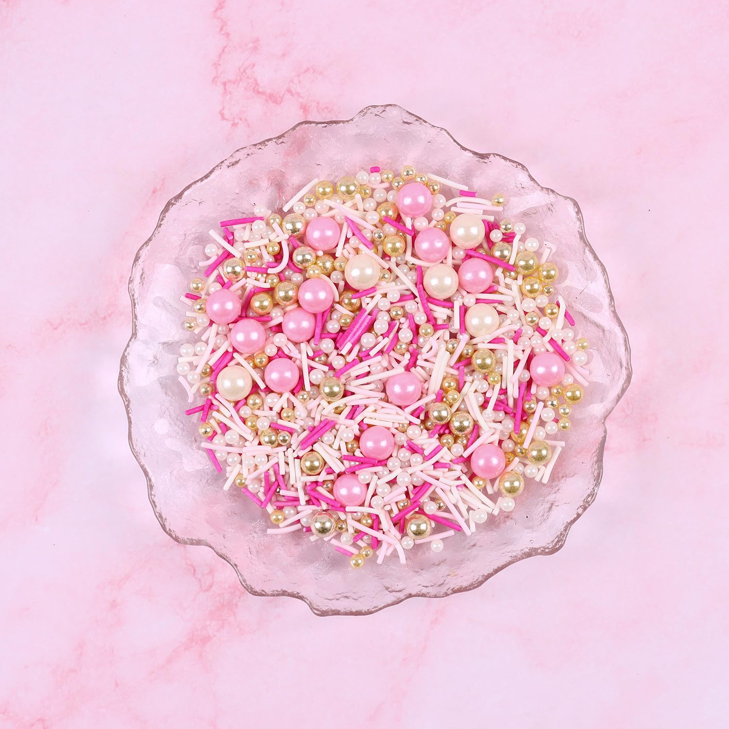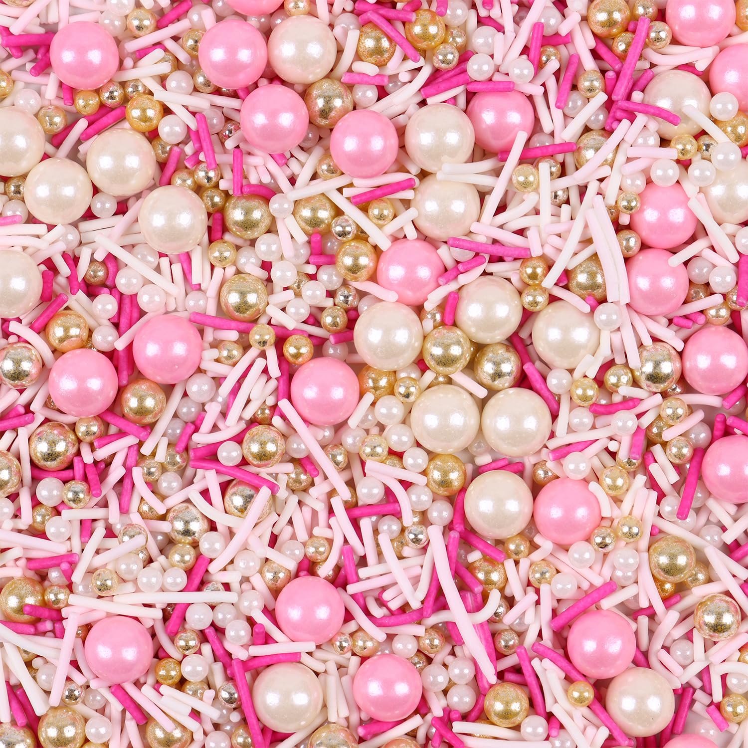 Valentine Pink sprinkles for Cake Decorating Edible Sprinkles for Cookies Ice Cream Cupcake Topper 7 ounce Metallic Sprinkle Mix Perfect for Wedding New Year’S Eve Party