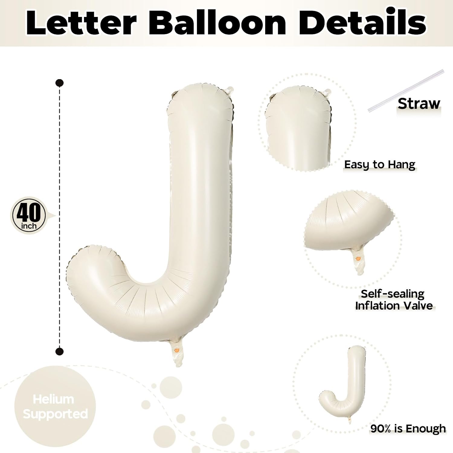 - š What You Get: Our product package includes 1pcs 40 inch "J" letter foil cream white balloon and 1pcs convenient straw for inflate. You can choose any big letter balloons to combine and customize the word you want to form. Make your party more unique and meaningful.
