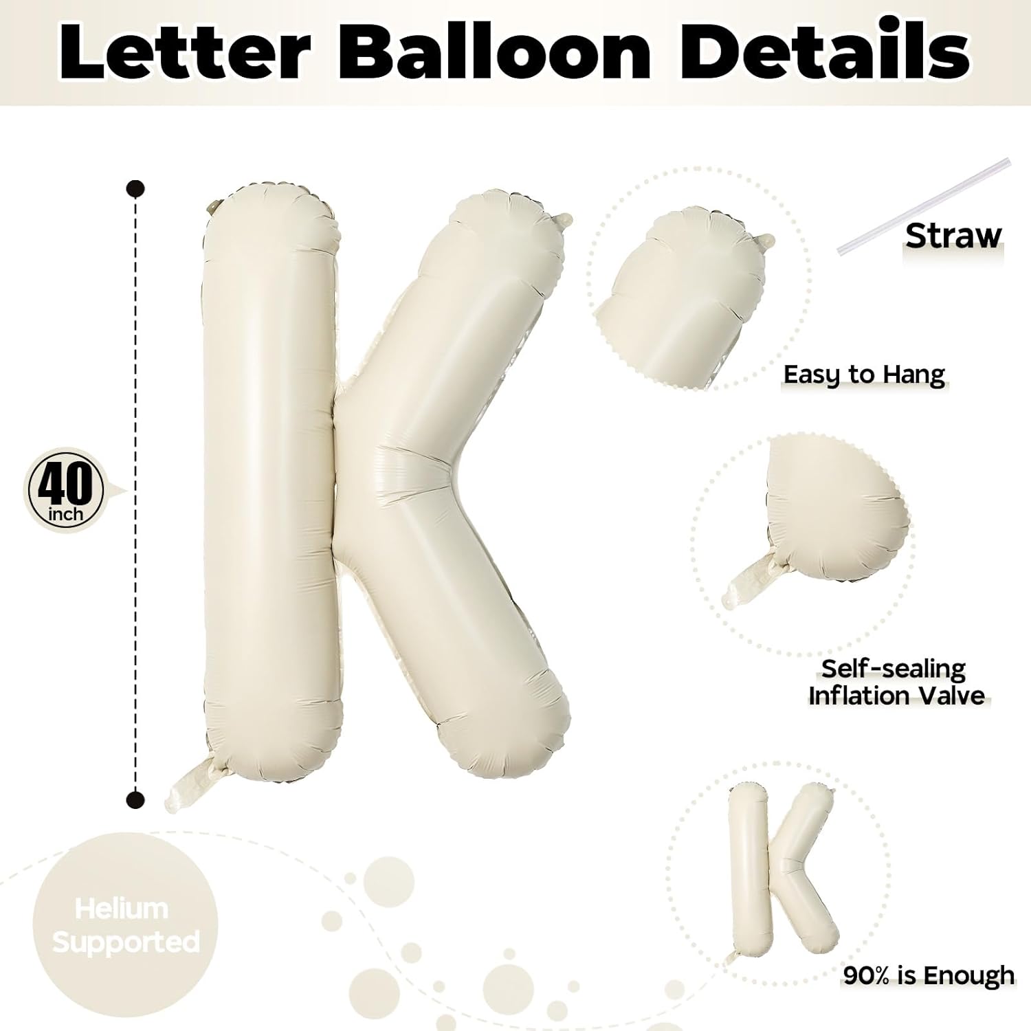 - š What You Get: Our product package includes 1pcs 40 inch "K" letter foil cream white balloon and 1pcs convenient straw for inflate. You can choose any big letter balloons to combine and customize the word you want to form. Make your party more unique and meaningful.