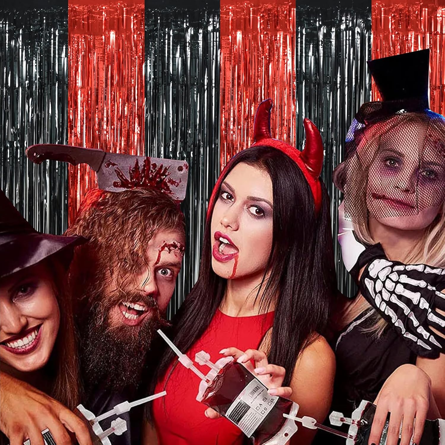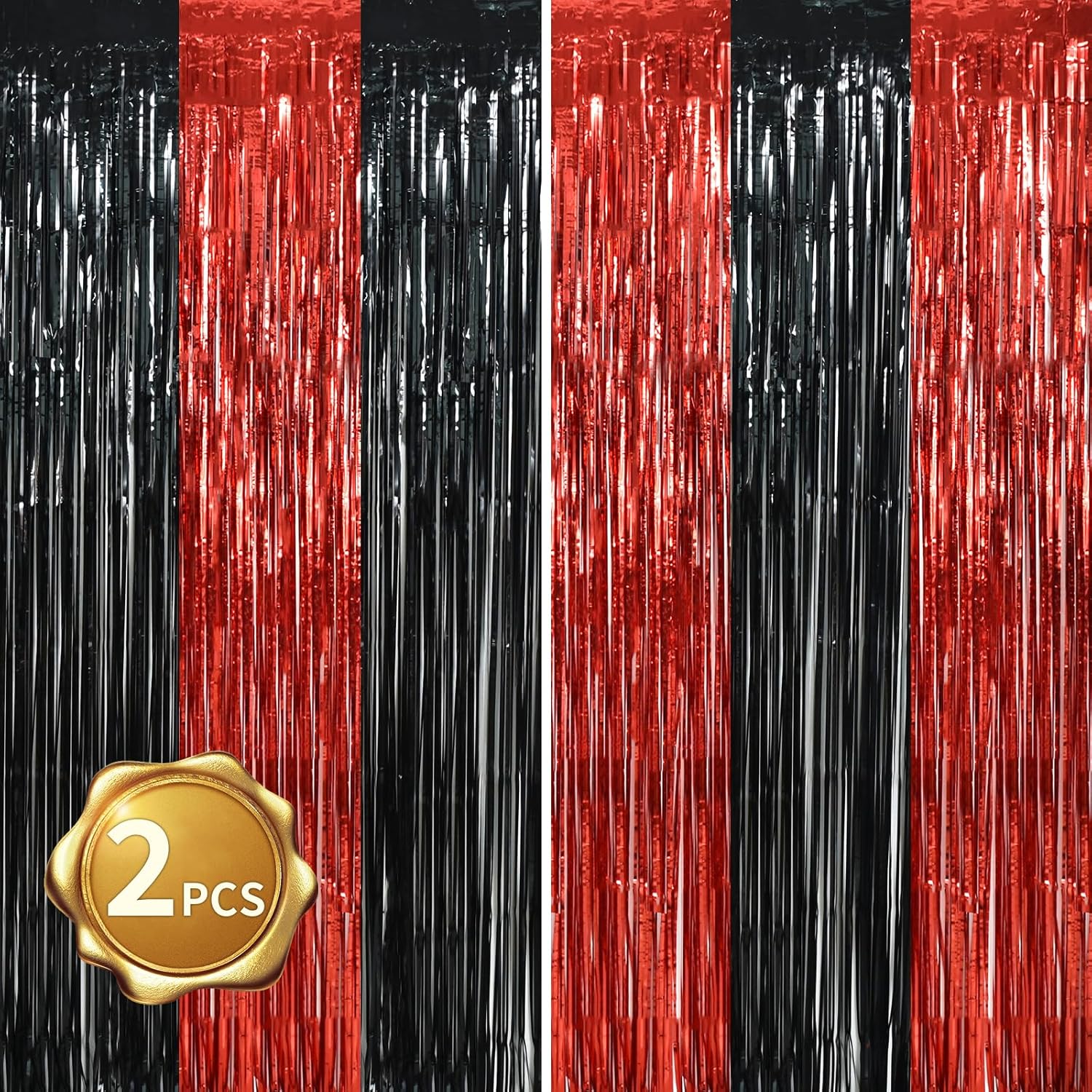 - 【shiny Party Streamer Backdrop】 Want to make your party to be a scream one? Get this foil backdrop curtain as the party backdrop now! You will find that the red and black streamers is great to make your party more exciting!