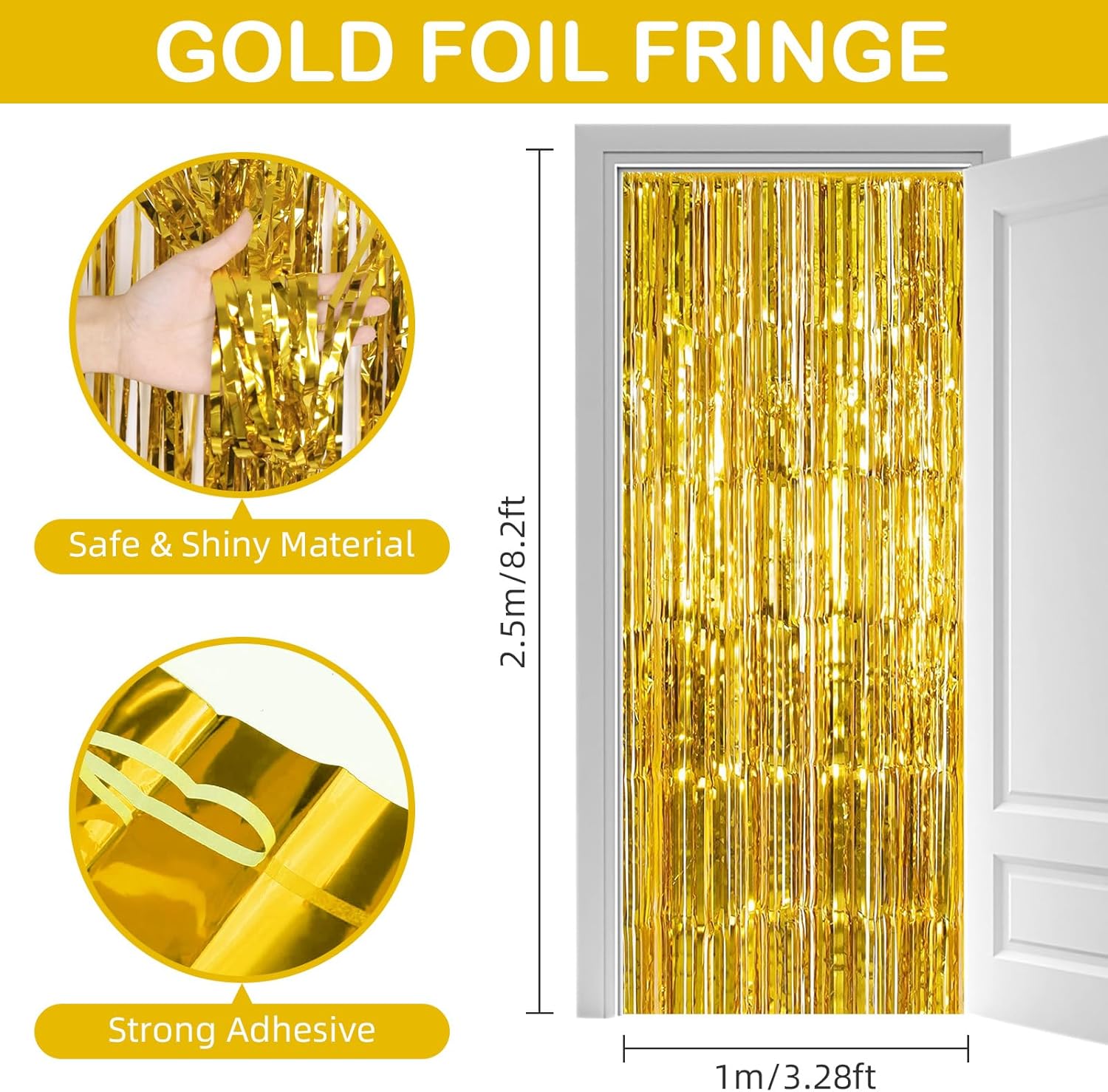 - 【Extra Large Quantity】You will receive 30 packs of gold foil fringe curtains. Each pack of foil curtains size is 3.28ft in width and 8.2ft in length, abundant quantity and enough length to meet almost all your party decoration needs.
