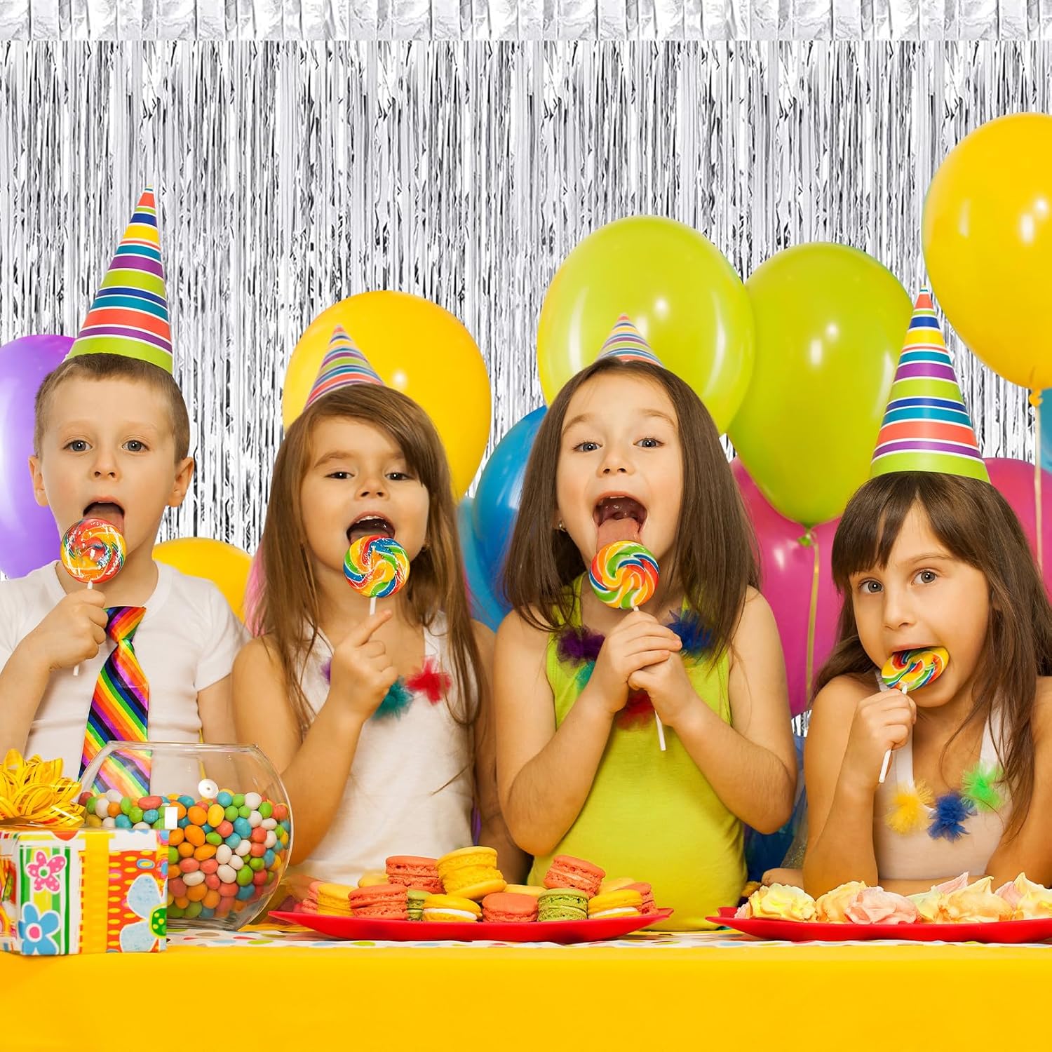 - 【Easy to Use】Tear off the double-sided adhesive tape on the back of the metallic backdrop curtain, then paste or hang it lightly for easy removal at the end of the party. Hang individual fringe curtains in different locations or splice and overlap two or more pieces of the curtain for a fuller effect.