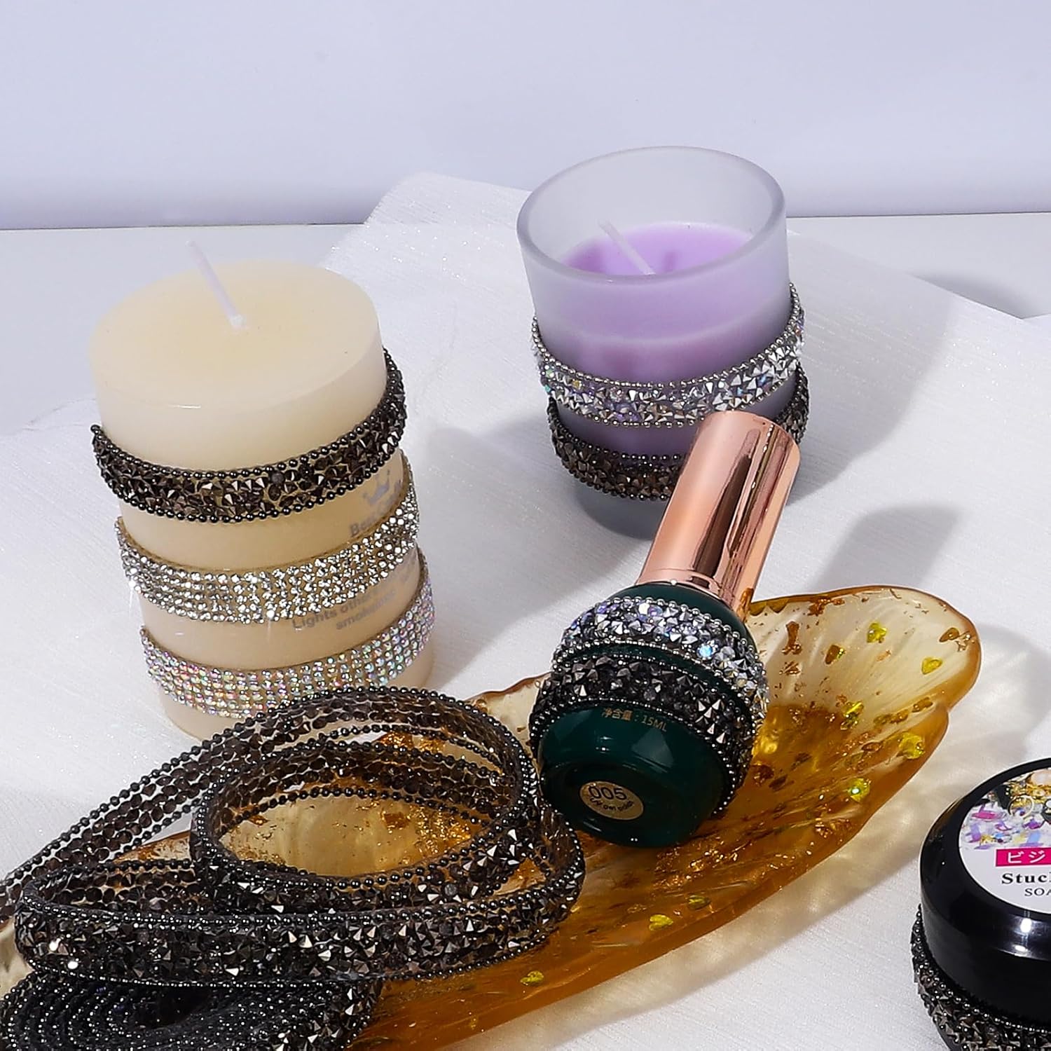 - Wide Applications: The bling rhinestone sticker strip is suitable for many DIY decorations, mirrors, candles, vases, photo frames, costumes, home decor, offices, gardens, cars, personalized phone cases, jewelry boxes, and other places.