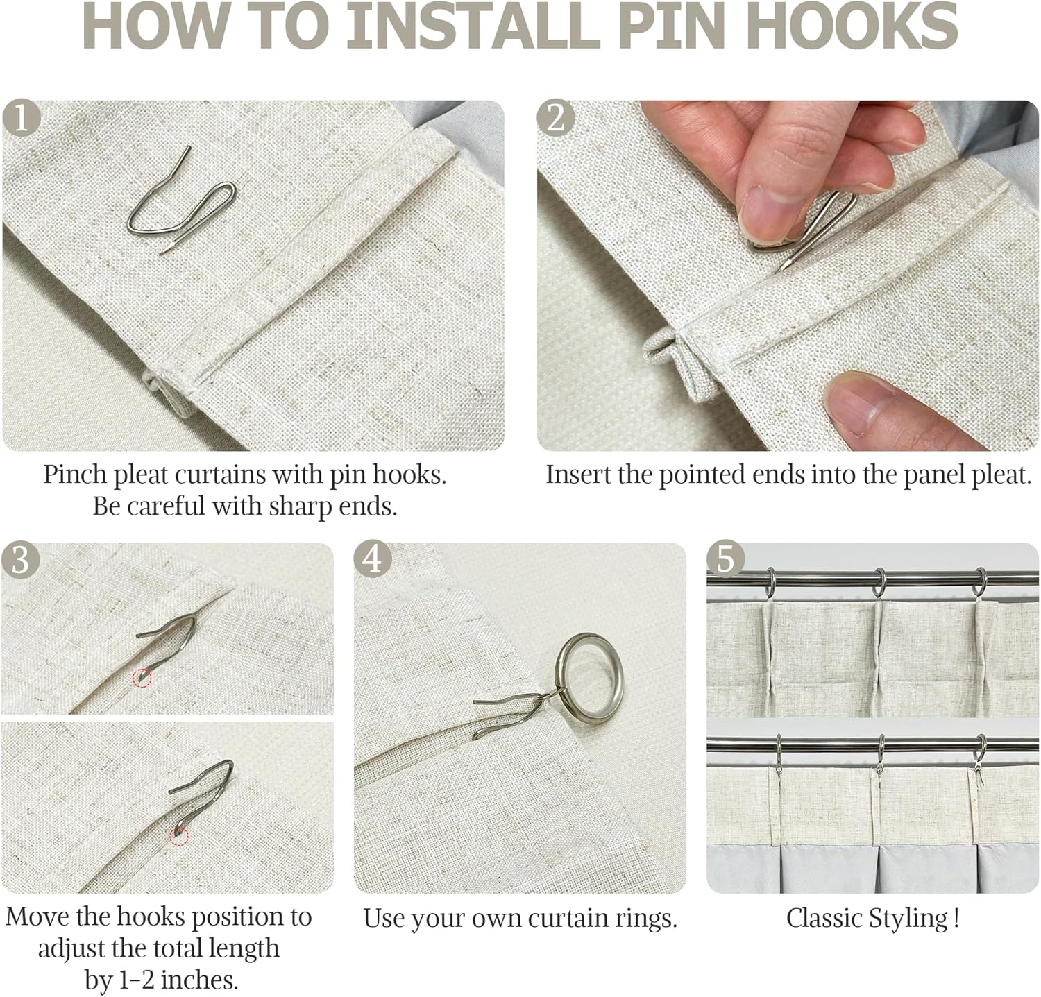 - Multiple Hanging Ways:Rustic Casual curtains have many hanging options to meet your different home dΓ©cor needs:back tabs(4 inch),clip rings,ring hooks or for track system.Please note that 18 hooks are in the package but clips and rings are not included.Two weighted hems sewn at the bottom increase the draping effect.Moving the pinhooks position to adjust the total height by 1-2 inches