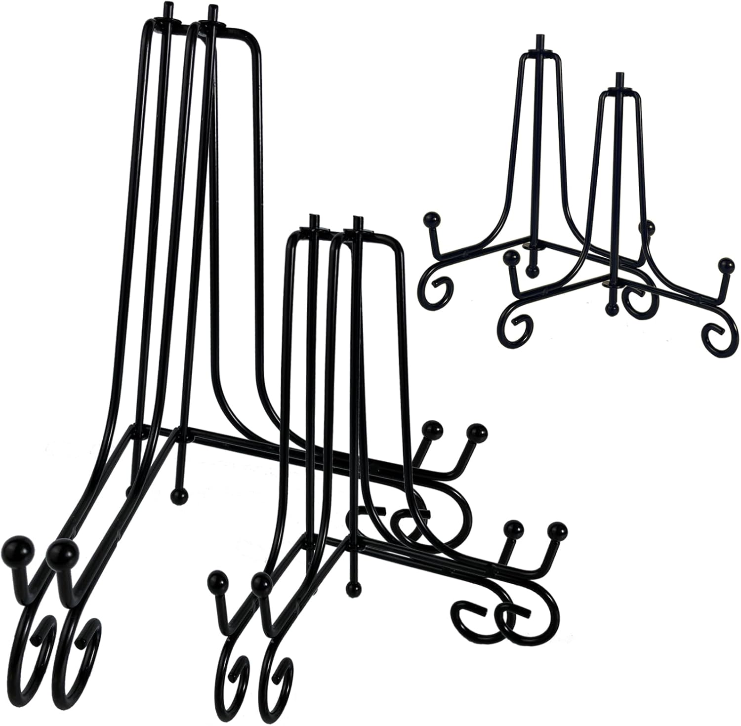 6PCS 3 Size Black Iron Plate Stands for Display - 4, 6, 8 Inch Decorative Metal Plate Holders - Mini Easel, Frame, Book, Card, Plaque, Bowl, Picture Display Stands