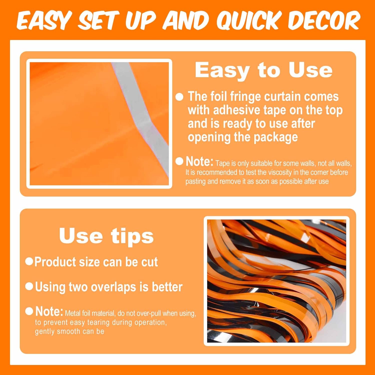 3 Pack Black Orange Foil Fringe Curtains Backdrop, 3.28 x 9.8 Ft Metallic Streamers Tinsel Curtains Background for Photo Booth, Birthday, Halloween, Christmas, Thanksgiving, New Year Party Decorations