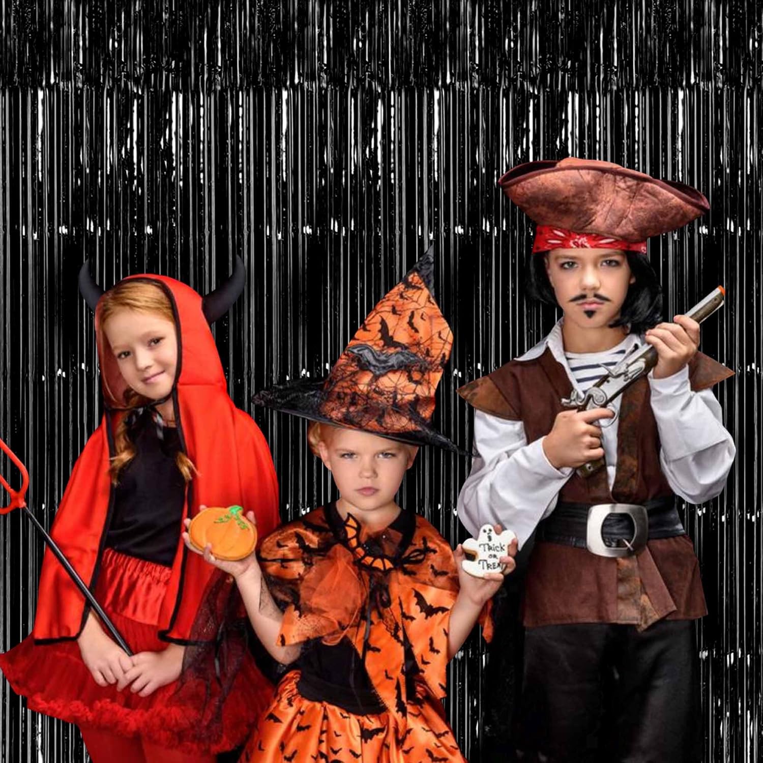 3 Pack Black Foil Fringe Curtains Backdrop, 3.28 x 9.8 Ft Metallic Streamers Tinsel Curtains Background for Photo Booth, Birthday, Halloween, Christmas, Thanksgiving, New Year Party Decorations