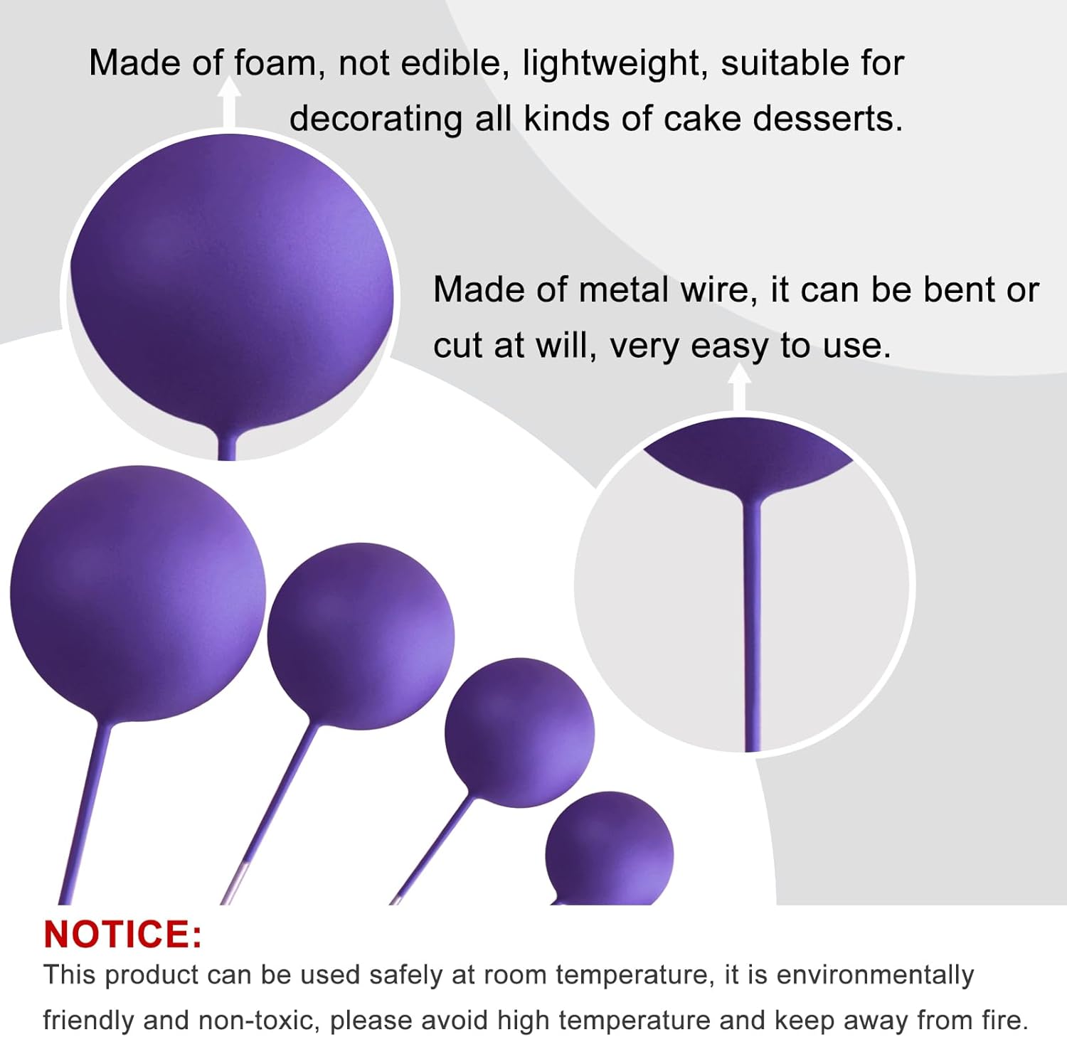 ASTARON 20 Pcs Ball Cake Topper Decorations Mini Balloons Cake Topper Sticks Dark Purple Balls Cake Picks Cake Topper Balls Cake Decorations for Halloween Birthday Cake Decorations