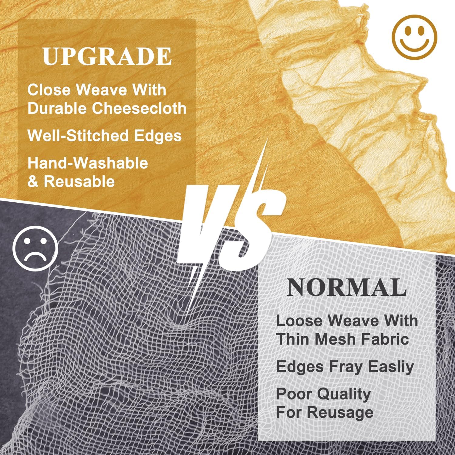 - 【Cheesecloth Table Runner】 Size: 35" W x 120" L. You will get 1 piece 10FT length cheesecloth table runner. The sheer rustic table runner is long enough to span a large table and drape gracefully across the table. It will gently sway in the wind, adding a romantic atmosphere to your occasion. These eye-catching gauze table runners are ideal for arranging an elegant, stylish tablescape.