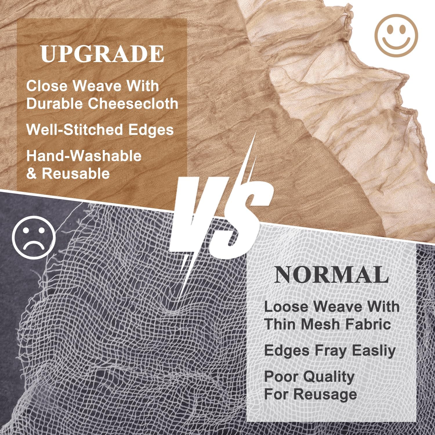 - 【Cheesecloth Table Runner】 Size: 35" W x 120" L. You will get 1 piece 10FT length cheesecloth table runner. The sheer rustic table runner is long enough to span a large table and drape gracefully across the table. It will gently sway in the wind, adding a romantic atmosphere to your occasion. These eye-catching gauze table runners are ideal for arranging an elegant, stylish tablescape.