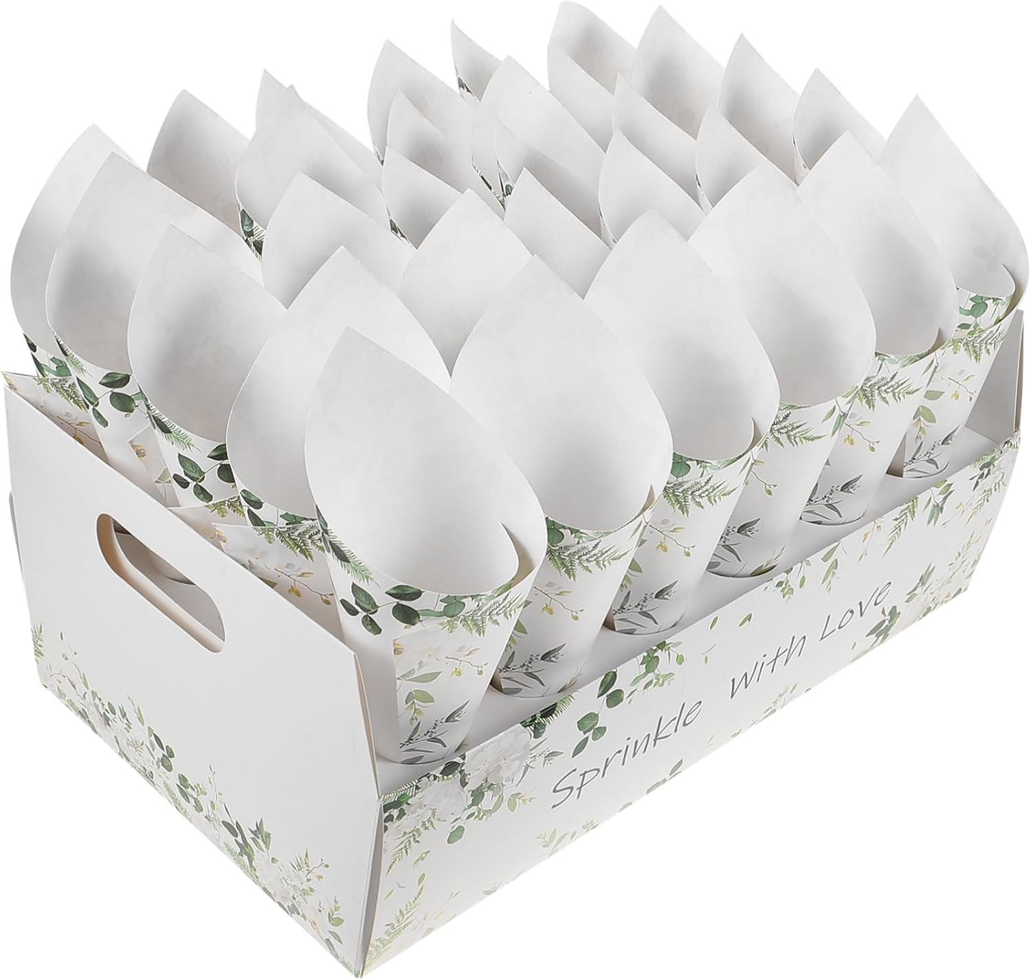 CIMAXIC Wedding Confetti Cone Holder Box - Flower, Paper, Petal Cones - White Paper Cup Candy Stand