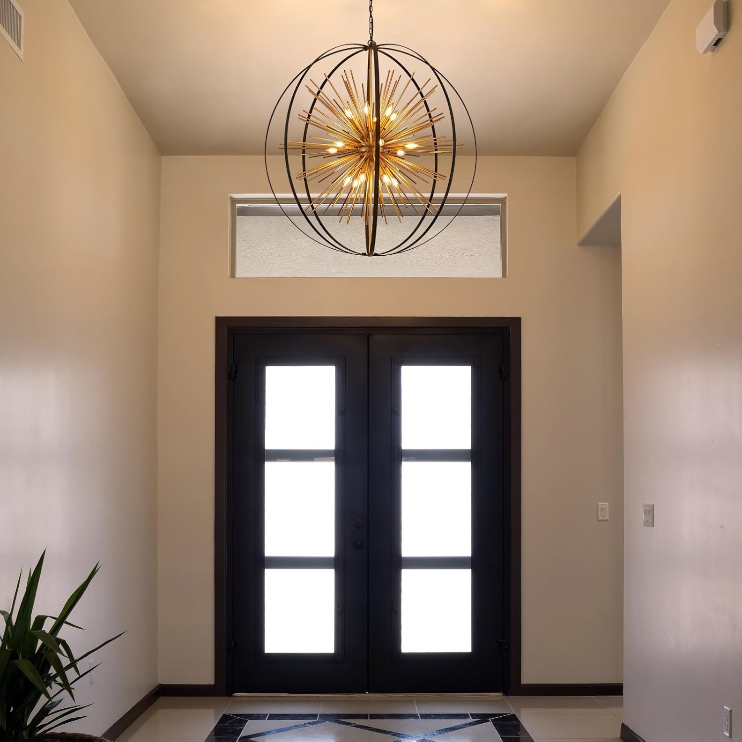 - 【Stunning Firework Design】The Black and Gold Sputnik Chandelier features a captivating spherical body that resembles a preserved firework, creating a striking focal point when illuminated. This Modern Chandelier combines contemporary and vintage elements, making it a perfect addition to various settings such as the living room, kitchen island, dining room, hallway, stairway, entryway, as well as restaurants.