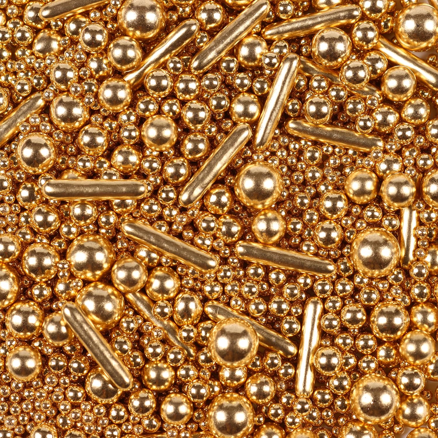 - Gold Sprinkles: Sparking gold pearl sprinkles consist of exclusive sizes of pearl sprinkles and pearl rods! Pearl sprinkles including 2mm, 4mm, 6mm, 7mm, 8mm. Metallic pearl rod mix meets your needs for various sizes of pearls and rods.