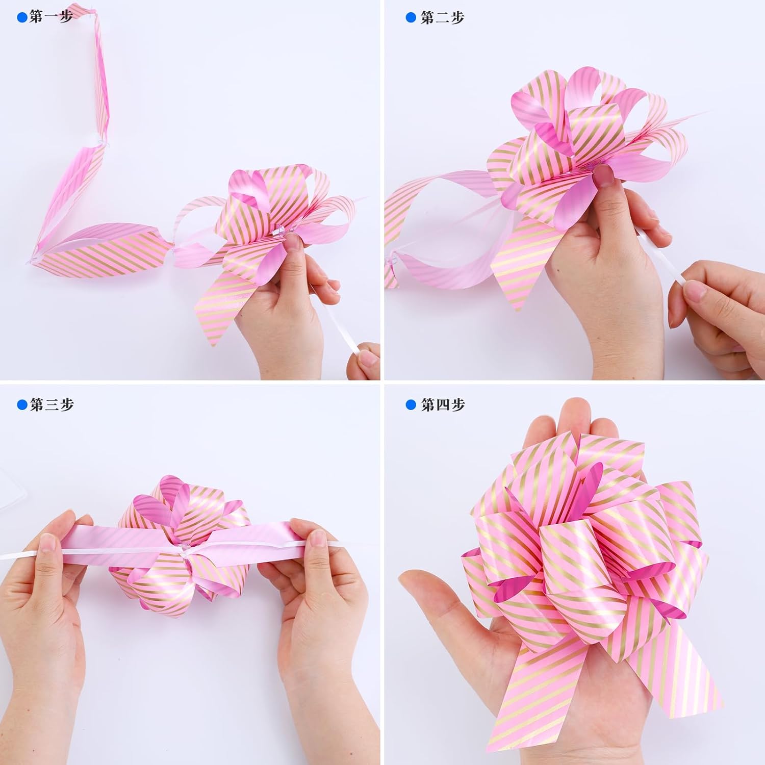 - Colorful and High Quality- Receive 12Pcs Beautiful Metallic Gift Wrapping Pull Bows in 7 Premium Colors. Our pull bows are designed in classic colors, they are made of superior PP plastic material and coated with a metallic bright coating on the surface,which can ensure that the bows are environmentally friendly, durable and not easily broken, while also being waterproof and fade resistant Perfect Choice for any Gift-giving and Holidays.