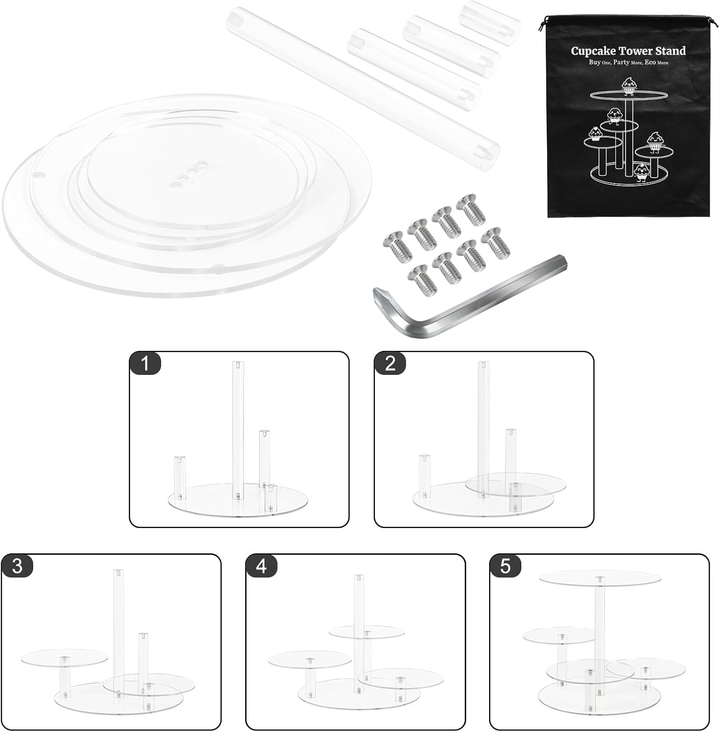 - š[Easy to Assemble] The cupcake tower stand can be put together very quickly and easily with the simple "screw together" design, because it is detachable. It also comes with a bonus tote bag for convenient carrying as well as storage