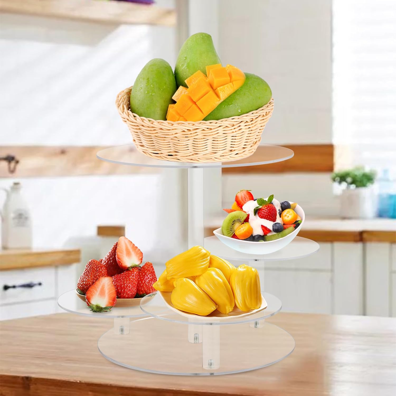 - š[Premium Cupcake Stand] This tiered cake and cupcake combo stand is made of 4mm thick premium acrylic which has a solid construction and unique design. The edges of the acrylic are perfectly clear and well polished, safe to use.