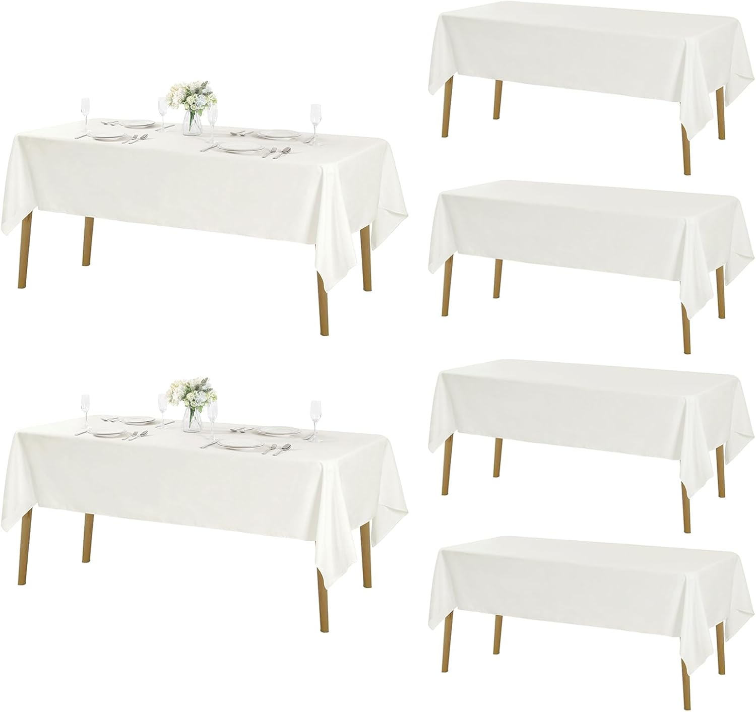 Fokitut 6 Pack Rectangle Tablecloth, 60x120 Inch, Stain Resistant and Wrinkle Polyester Table Cloth, Fabric Table Cover for Kitchen Dining, Wedding, Party, Holiday Dinner-Ivory
