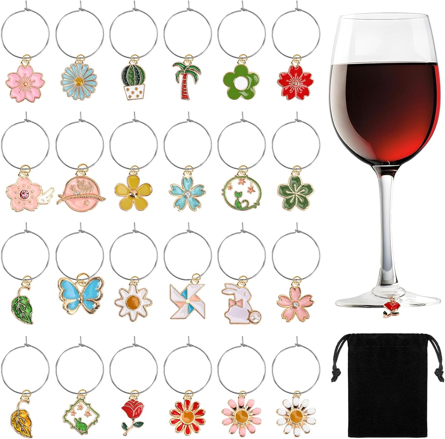 - Package Contents: You will receive 24 exquisite glass charms and a black storage bag, adding brilliant decoration to your red wine glass and making your party more charming